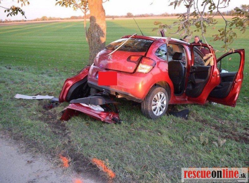KRPZ Trnava |MM| Dopravní policajti zasahovali včera pri vážnej dopravnej nehode v okrese Dunajská Streda. K nehode došlo na ceste II. triedy medzi Kvetoslavovom a Šamorínom. 30 ročná vodička prešla s autom Citroen C3 z nezistených príčin mimo cestu, kde narazila do stromu. Po nehoda zostala žena zakliesnená vo vozidle a záchranári ju následne s podozrením na vážne zranenia letecky previezli do nitrianskej nemocnice. Pri nehode sa nik iný nezranil. Presné príčiny nehody polícia naďalej vyšetruje.