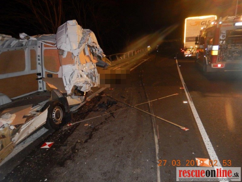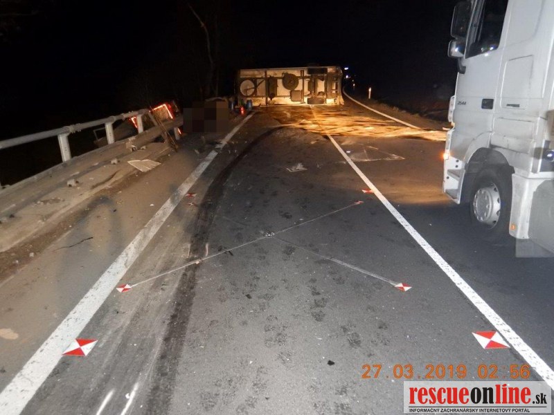 KRPZ Banská Bystrica |MM| Tragická dopravná nehoda sa stala dnes (27.3.) o 00.39 hod. na ceste I/66 za obcou Hontianske Nemce. Došlo tu k čelnej zrážke dodávky s kamiónom. Podľa doterajšieho objasňovania k nehode došlo tak, že 43-ročný vodič, občan Poľskej republiky viedol jazdnú súpravu v smere od Hontianskych Nemiec na obec Domaníky, pričom v pravotočivej zákrute prešiel do protismeru, v mieste, kde je to zakázané a došlo k čelnej zrážke s vozidlom Mercedes Sprinter (dodávkové vozidlo), ktoré viedol 60-ročný vodič, občan Českej republiky. Vodič kamiónu prešiel do protismernej časti pravdepodobne v dôsledku nevenovania sa plne vedeniu a prevádzke vozidla. 60-ročný vodič utrpel zranenia, ktorým na mieste nehody podľahol. Vyšetrovateľ začal v súvislosti s tragickou nehodou trestné stíhanie pre podozrenie z prečinu usmrtenia. Presná príčina dopravnej nehody, ako aj miera jej zavinenia je predmetom ďalšieho vyšetrovania. Na mieste boli prítomní aj znalci z odboru dopravy a z odboru zdravotníctva.