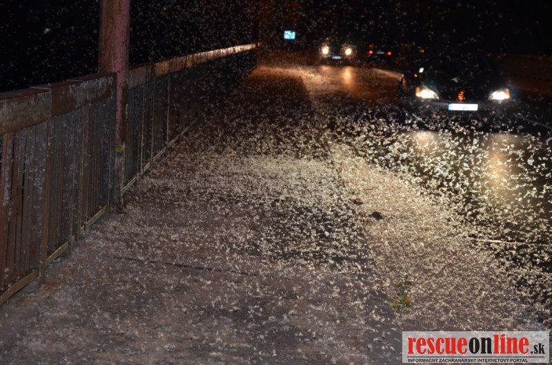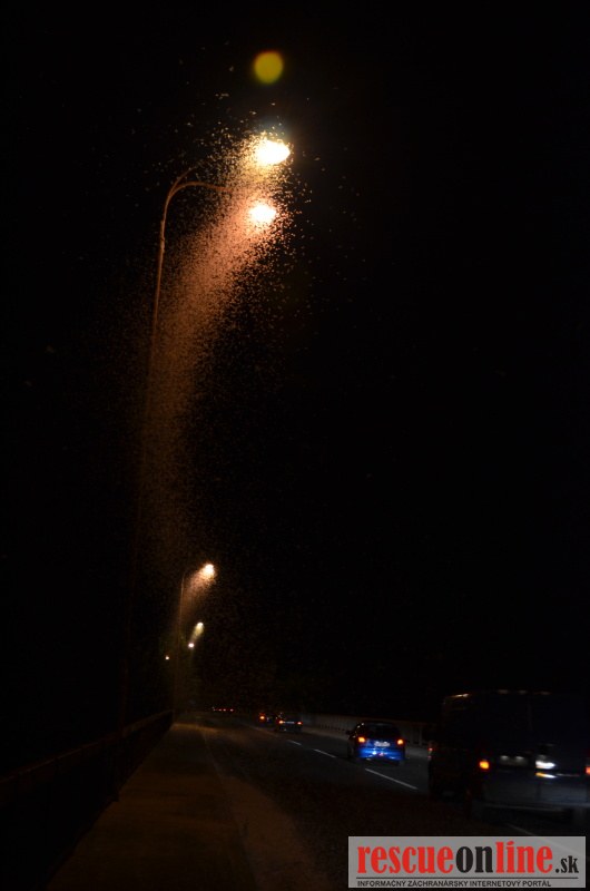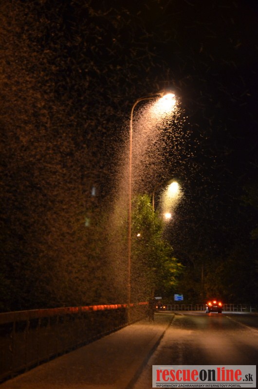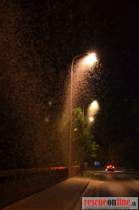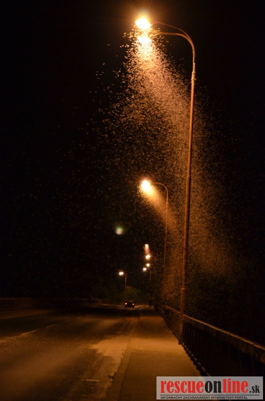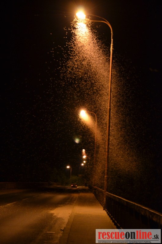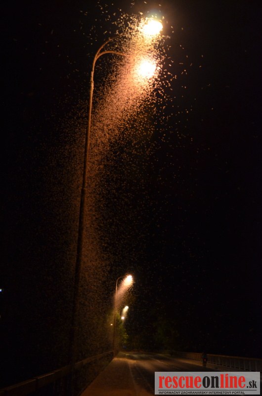 Sereď | Ako kulisy z hororového filmu v neskorých večerných hodinách prechádzajúcim po moste cez rieku Váh, pripadal výjav pod lampami verejného osvetlenia. Státisíce ťažko identifikovateľnej lietajúcej hávete bránila chodcom prechádzať po jednej strane mosta. Asi dvoj centimetrová vrstva živočíchov ležiaca na ceste, vydávala po prejdení autom zvláštny zvuk. Mole sa držali osvetlenia iba v časti mosta, mimo neho ich vidieť nebolo.