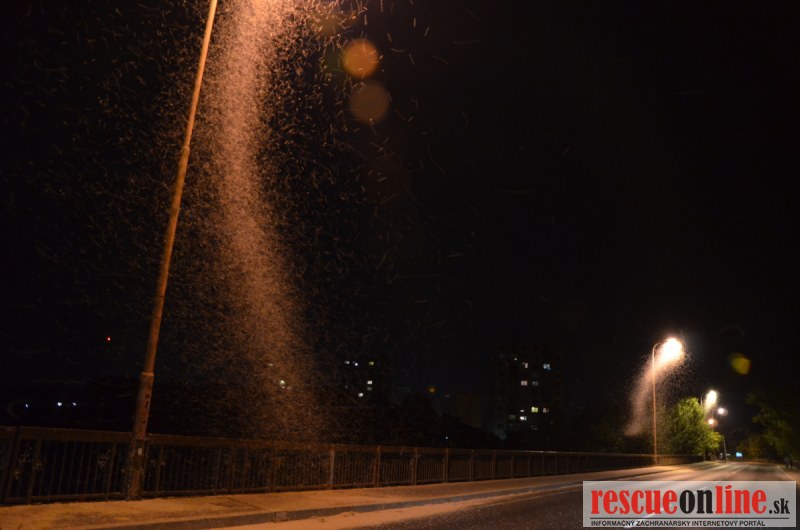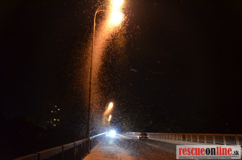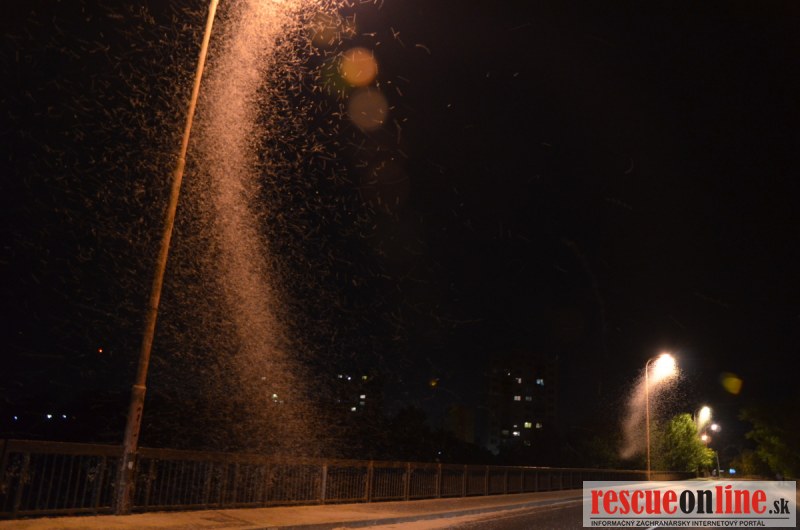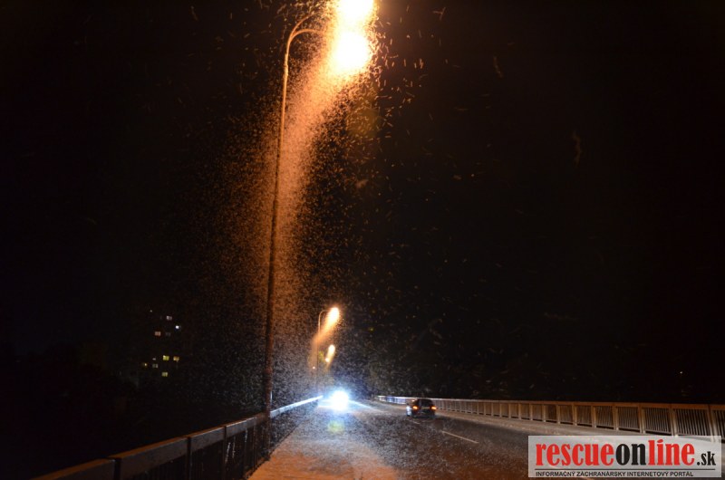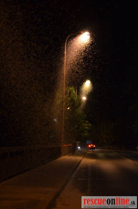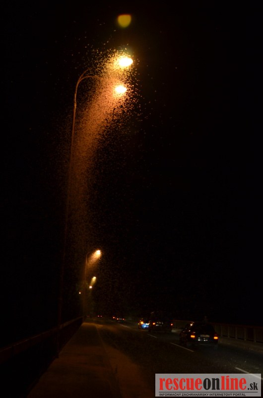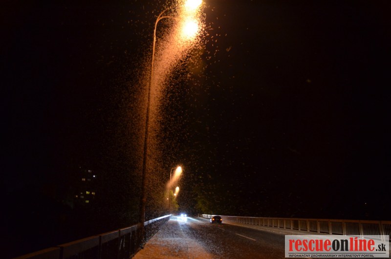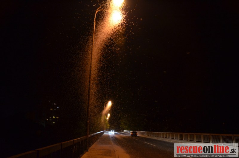 Sereď | Ako kulisy z hororového filmu v neskorých večerných hodinách prechádzajúcim po moste cez rieku Váh, pripadal výjav pod lampami verejného osvetlenia. Státisíce ťažko identifikovateľnej lietajúcej hávete bránila chodcom prechádzať po jednej strane mosta. Asi dvoj centimetrová vrstva živočíchov ležiaca na ceste, vydávala po prejdení autom zvláštny zvuk. Mole sa držali osvetlenia iba v časti mosta, mimo neho ich vidieť nebolo.