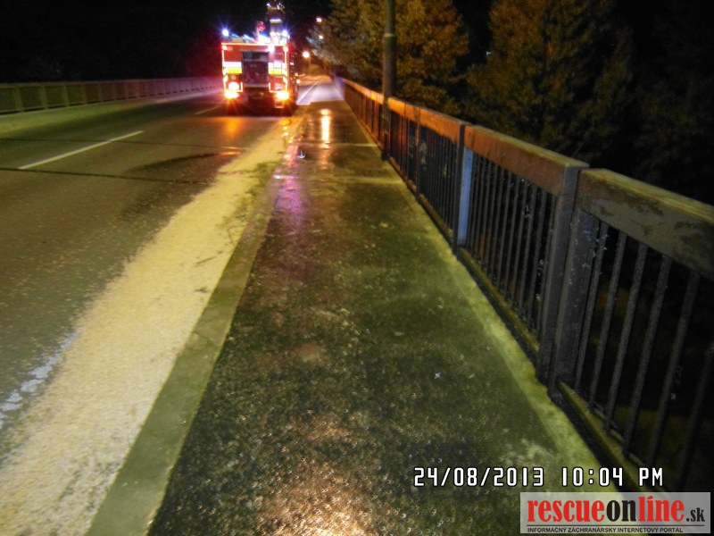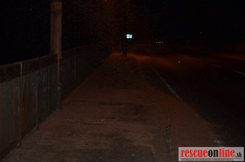 Po ohlásení mestskej polície, boli na miesto vyslaní hasiči HaZZ zo Serede, ktorí prúdom vody zmyli aspoň chodník. Cesta zostane na správcu komunikácie.