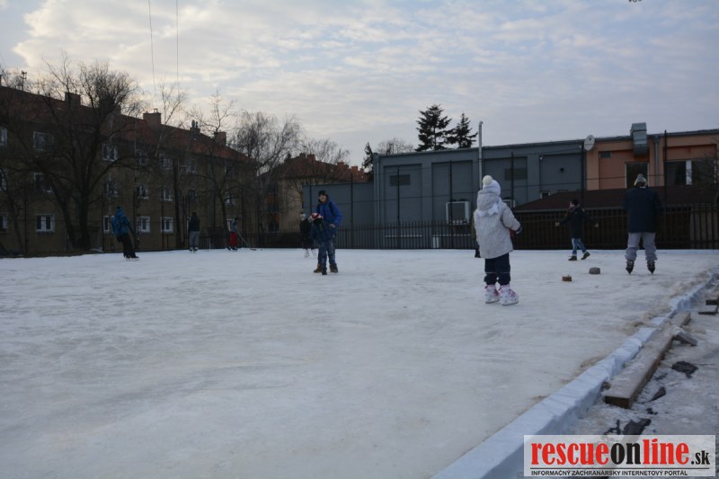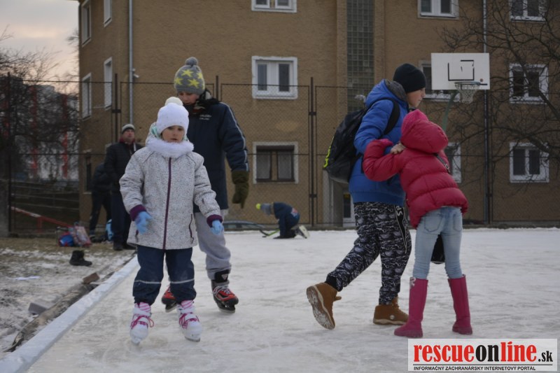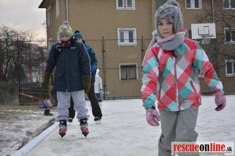 Sereď | Ani snaha niekoľkých dobrovoľníkov by nebola korunovaná úspechom, keby sa k nám "matička príroda" obrátila chrbtom. Účty za vykurovanie síce porastú, no dnes už rastie aj radosť na tvárach detičiek, šmýkajúcich a korčuľujúcich sa na ľadovej ploche oproti hasičom. Práve tento priestor je pre aktivity detí priam ideálny, nakoľko prakticky z troch strán je ohradený síce nie zrovna novým oplotením ale zatiaľ aspoň funkčným a ani z ostatných strán nehrozí odbehnutie dieťaťa priamo pod kolesá auta idúceho po frekventovanej cestnej komunikácii.