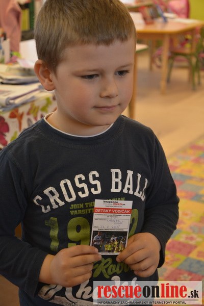Sereď | Dnešné upršané predpoludnie využili predškoláci materskej školy Komenského v budove "A" na výučbu bezpečného správania sa na ceste. Vďaka mobilnému dopravnému ihrisku projektu Bezpečné mesto sa ich trieda premenila na malé mestečko s cestičkami, kruhovým objazdom a priechodmi pre chodcov, semaforom či železničným priecestím. Praktickej časti výučby predchádzala teoretická časť, kde ich pani učiteľka oboznámila s dopravnými značkami a nasimulovanými dopravnými situáciami, s ktorými sa môžu stretnúť v cestnej premávke. Hravou formou si tak detičky osvojili svoje znalosti v oblasti dopravnej výchovy a zahrali sa na dopravné prostriedky. Malí vodiči tak absolvovali kurz, za ktorý každý obdržal "detský vodičák" projektu Bezpečné mesto. Musíme však povedať, že detičky boli veľmi šikovné, mnohé z nich by ich rodičia pokojne mohli pustiť na bicykel do mesta bez obáv.