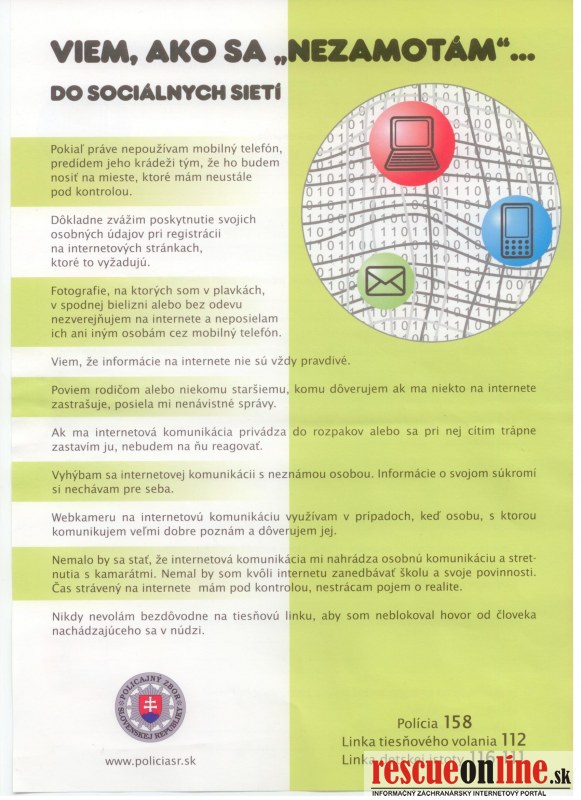 Dnešné generácie si život bez internetu už ani nevedia predstaviť. V on-line priestore nachádzajú vzdelanie aj zábavu. Nie každá informácia má však na dieťa priaznivý vplyv. Internetové stránky môžu obsahovať aj vulgarizmy alebo informácie podnecujúce k trestnej činnosti, nenávisti či extrémizmu. Sociálne siete dávajú priestor na nadväzovanie nových kontaktov, no anonymita užívateľov internetu má aj temnú stránku. V praxi sa polícia stretáva so zneužívaním internetu na páchanie rôznej trestnej činnosti. Jej obeťami sa neraz stávajú aj deti. Tak ako ich rodičia učia bezpečne prechádzať cez cestu, je dnes potrebné, aby ich naučili aj bezpečné používanie internetu.