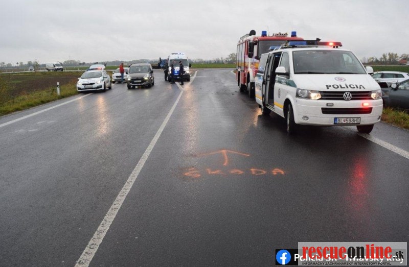 KRPZ Trnava |MM| Galantskí nehodovkári boli najprv privolaní k dopravnej nehode na obchvate mesta. Vodič Mitsubishi L 200 pri vychádzaní z kruhového objazdu v smere od Matúškova na Sládkovičovo prešiel do protismeru, kde sa čelne zrazil s oproti idúcim autom Škoda Kodiaq. V dôsledku zrážky skončili autá mimo cesty v priekope, ich vodiči sa zranili ľahko.