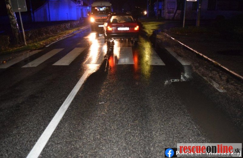 K ďalšej nehode sa presúvali policajti do obce Veľká Mača. 37 ročný vodič Škody Octavia tu pod vplyvom alkoholu zrazil 70 ročnú cyklistku. Žena jazdila na bicykli po krajnici v tom istom smere ako auto. Dychovou skúškou vodičovi policajti namerali 0,85 mg alkoholu, čo je v prepočte 1,77 promile. Cyklistka utrpela pri nehode zatiaľ nešpecifikované zranenia.