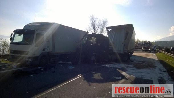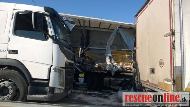 Odklon dopravy je po ceste č. 1/18. Dopravu riadi Polícia. Únik nafty na vozovku odstraňujú hasiči. Jeden z vodičov kamióna sa ľahko zranil.