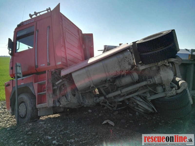 Včera (10. apríla 2017) krátko po 16.00 hod. bola ohlásená dopravná nehoda kamióna na R1. Kamión aj s návesom sa nachádzal prevrátený na pravej strane a blokoval jeden jazdný pruh. V dôsledku dopravnej nehody došlo k úniku hydraulického oleja. Hasiči na vozidle vykonali protipožiarne opatrenia a uniknuté látky zachytili pomocou sorpčných materiálov.