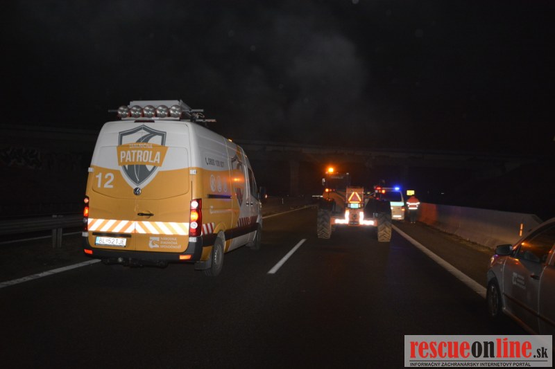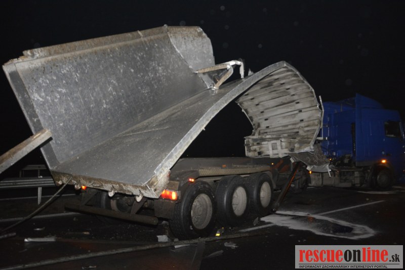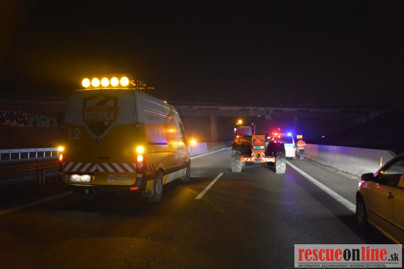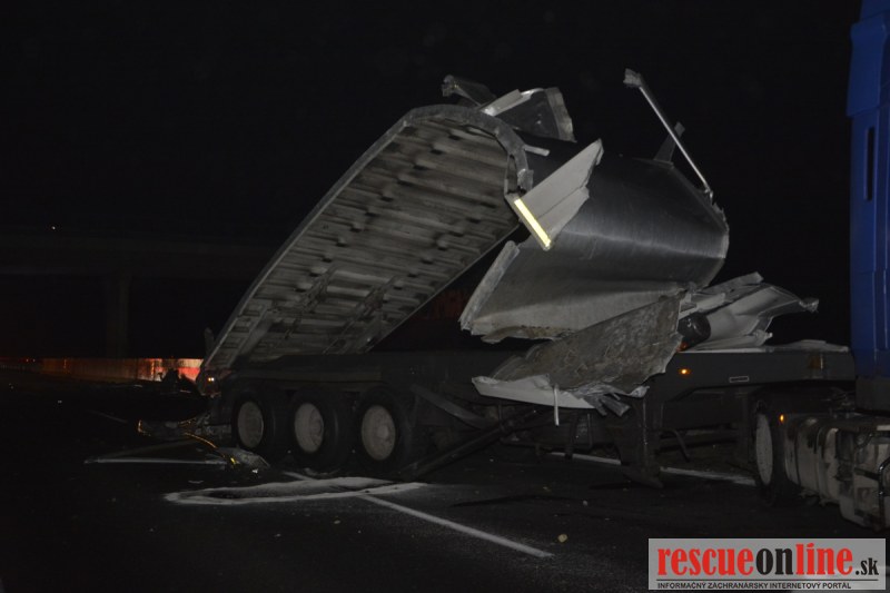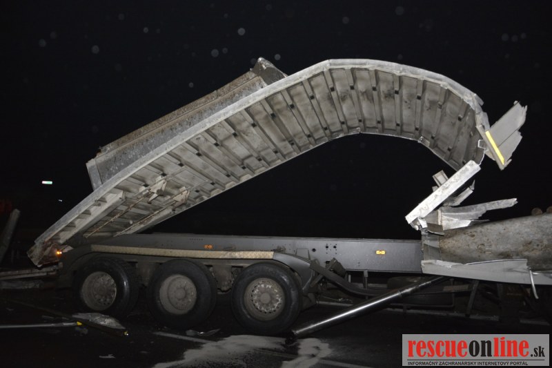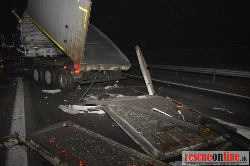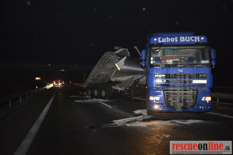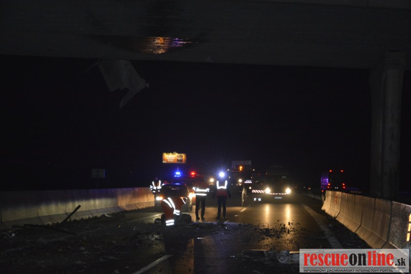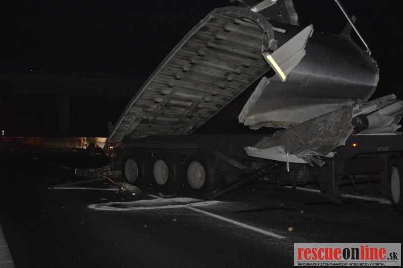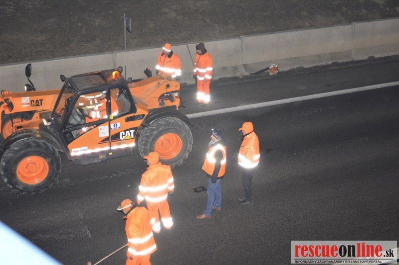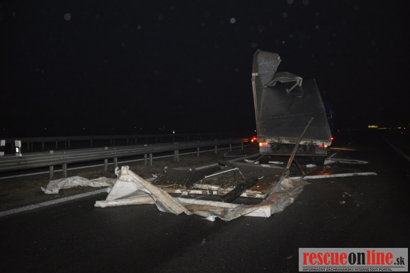 Dopravnú nehodu zavinil vodič kamiónu, ktorý išiel smerom od Trnavy. Pred nadjazdom si nevšimol, že došlo nadvihnutiu zadnej časti súpravy, ktorá vzápätí narazila do mostu. Pri nehode sa nik nezranil, 54 ročný vodič z okr. Nitra sa podrobil orientačnej dychovej skúške na alkohol, ktorá bola negatívna. Škoda na vozidle a poškodenom moste bola odhadnutá na 70000 eur. V zmysle zákona mu policajti za dopravný priestupok uložili na mieste blokovú pokutu. V takýchto prípadoch, ak vodič počas jazdy zistí, že vozidlo, náklad alebo upevnenie nákladu nespĺňajú ustanovené podmienky, je povinný chybu odstrániť na mieste. Ak nevie odstrániť chybu na mieste, pokračovať v jazde môže len primeranou rýchlosťou do miesta, kde chybu odstráni. Pri dojazde nesmie ohroziť bezpečnosť iných a zároveň nemôže prísť k ďalším škodám na ceste.