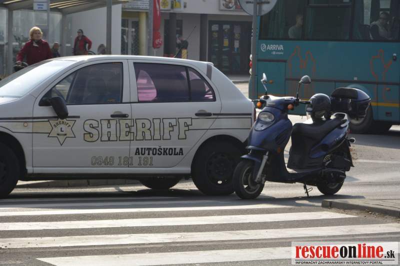 K dopravnej nehode došlo o 11.50 h medzi osobným autom a skútrom. Vodič na aute zozadu potlačil vodiča na skútri, ktorého zranil. Záchranári ho previezli na ošetrenie do galantskej nemocnice. Rozsah zranení polícia ešte nepozná. Nehoda sa zaobišla bez alkoholu a ďalšieho zranenia. Škoda na vozidlách bola odhadnutá na 100 eur. Dopravnú nehodu polícia naďalej vyšetruje.