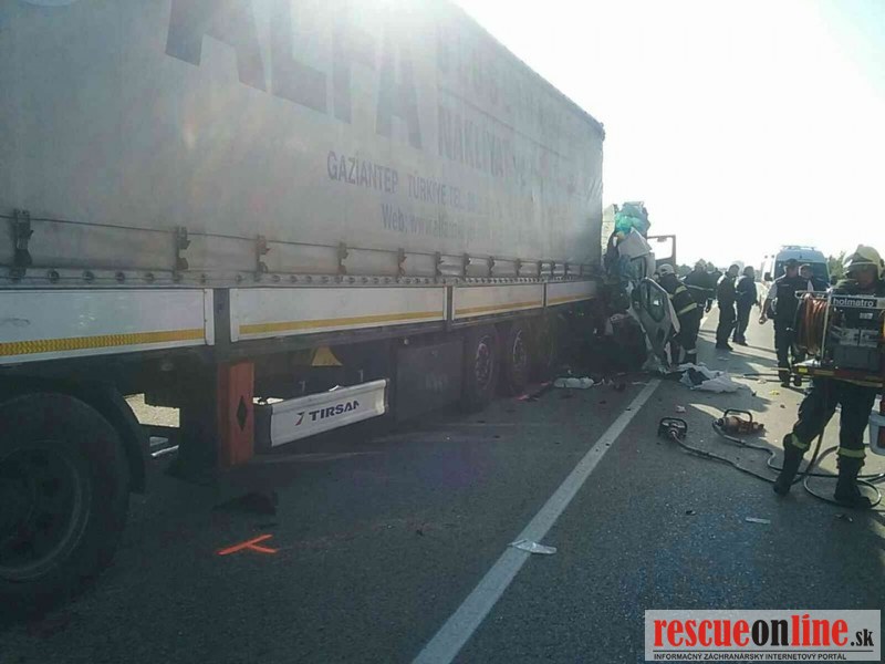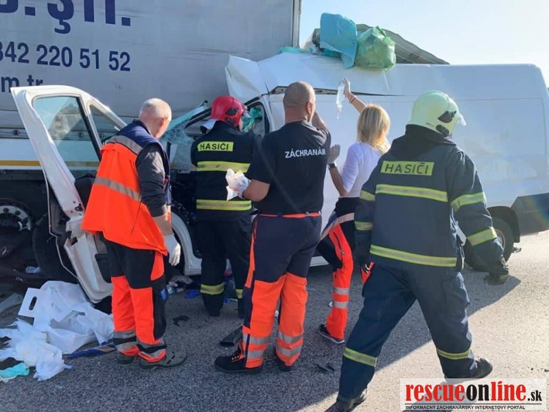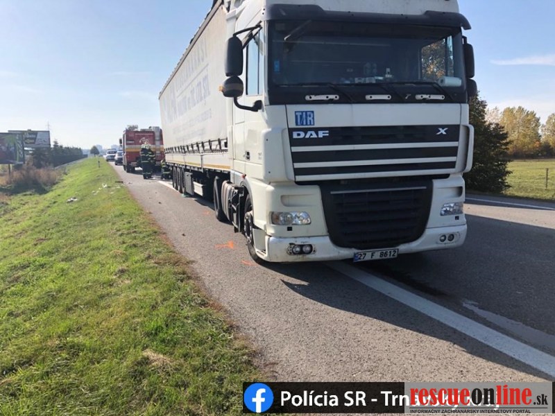 Cesta je v úseku uzatvorená, polícia vykonáva odklon premávky a dokumentovanie nehody. Presné príčiny a okolnosti nehody vyšetrujeme.