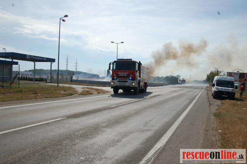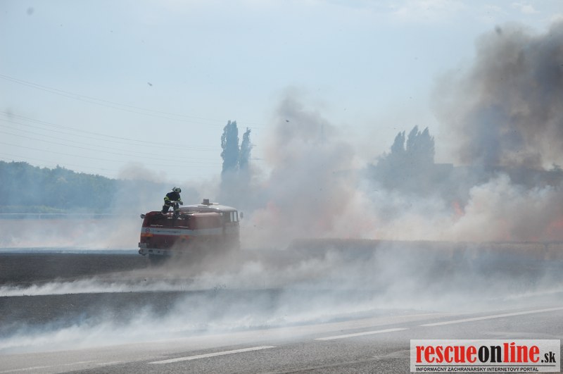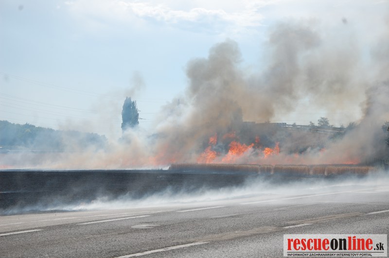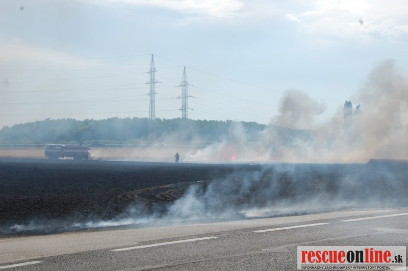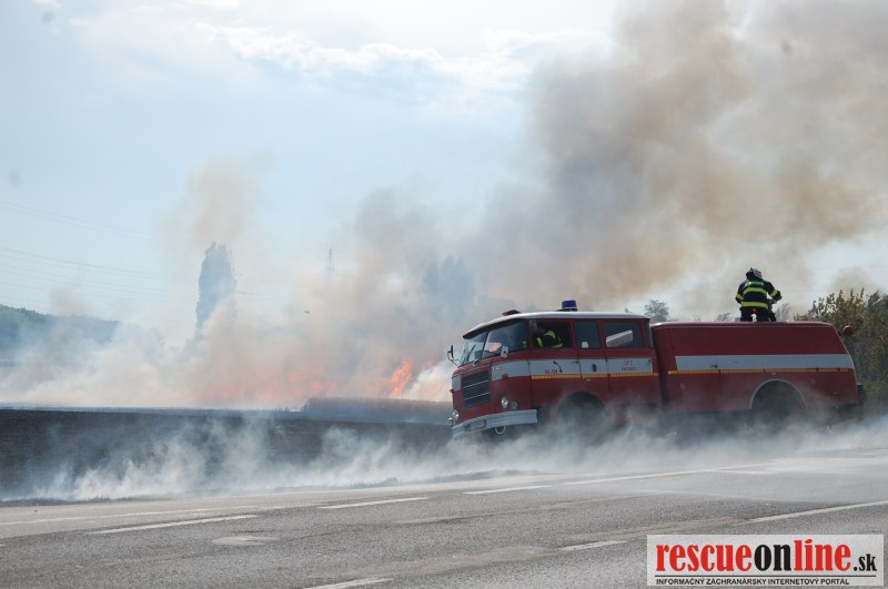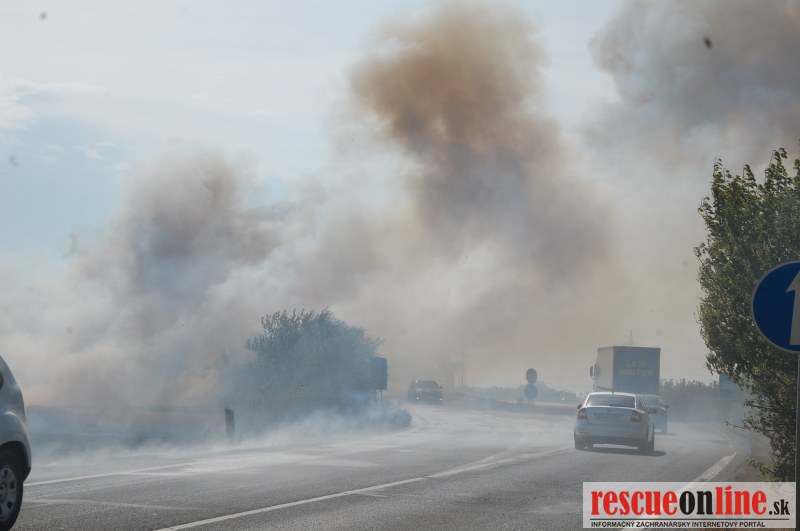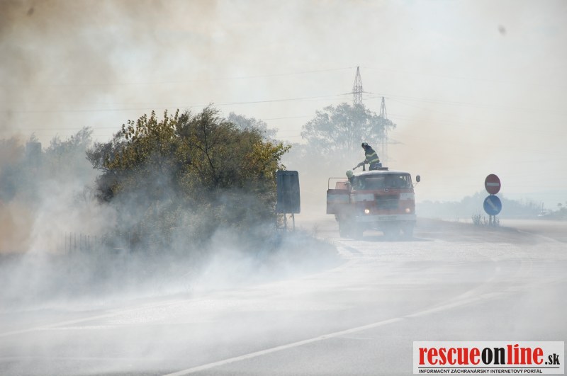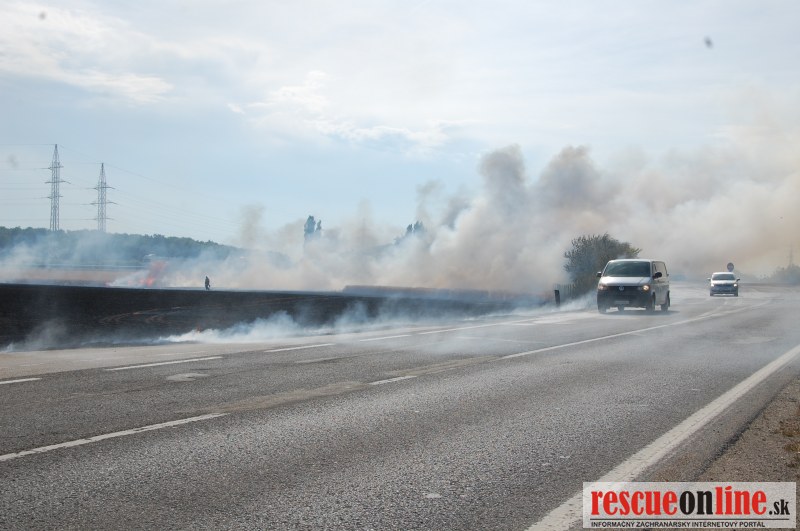 Je 16:40 hodín a hasiči ešte stále požiar na mieste likvidujú. Pri prejazde buďte opatrní, nakoľko sa dym šíri aj ponad vozovku.
