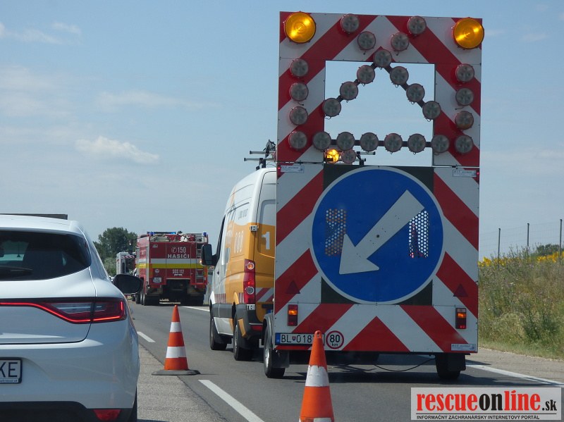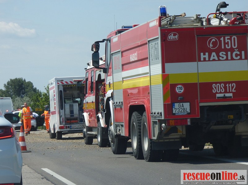Práve v tejto chvíli zasahujú jednotky HaZZ , polície a záchranári pri dopravnej nehode kamióna na rýchlostnej komunikácii R1, v smere Nitra-Bratislava, pred odbočkou na obec Pata (približne na 24,5 km). Kamión skončil prevrátený mimo komunikáciu a záchranári blokujú pravý jazdný pruh. Pred miestom nehody sa tvoria kolóny, preto zvýšte opatrnosť pri prechode týmto úsekom.
