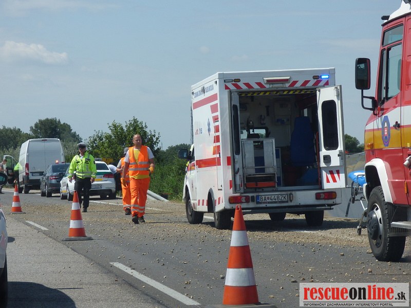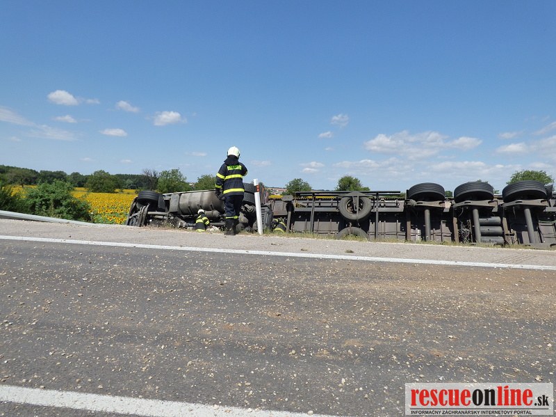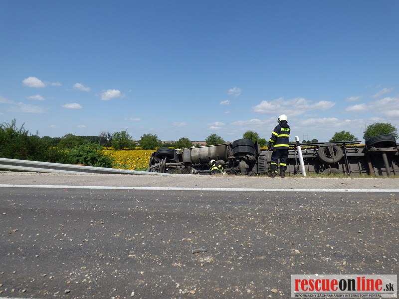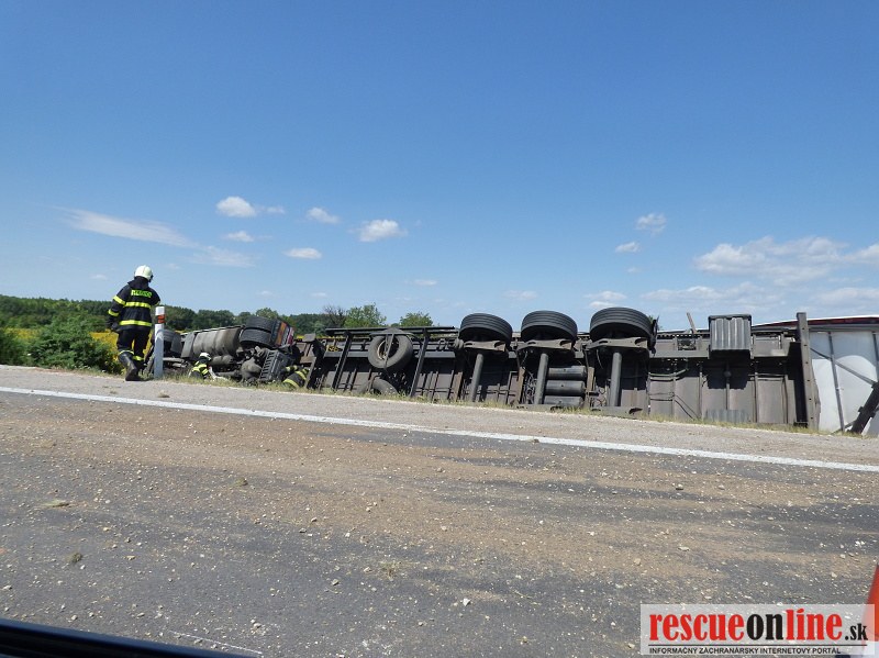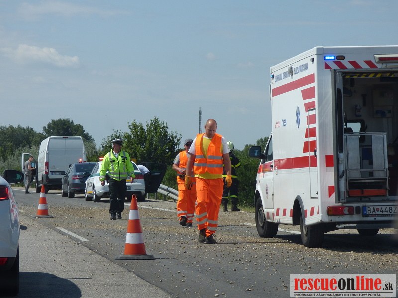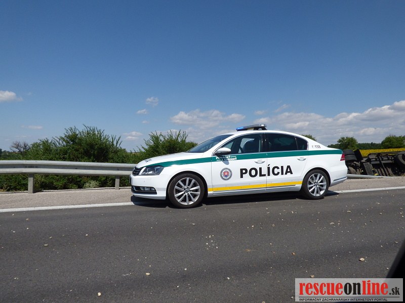 Polícia v týchto chvíľach zabezpečuje rýchlostnú cestu, aby po nehode mohol byť vytiahnutý kamión, ktorý skončil mimo cestu. K nehode došlo dopoludnia na rýchlostnej ceste R1 pri odbočke na Patu v smere na Trnavu.