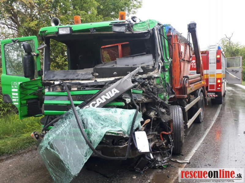 KRPZ Trnava |MM| Polícia dokumentuje dopravnú nehodu, ku ktorej došlo medzi obcami Jelka a Nový Život, na ceste II/510. K nehode došlo pravdepodobne tak, že vodič nákladného auta dostal v zákrute na mokrej ceste šmyk. Prešiel do protismeru, kde sa zrazil s oproti idúcim poľským kamiónom. Vodič nákladného auta utrpel pri nehode ťažké zranenia a bol vrtuľníkom prevezený do nemocnice. Vodič z poľského kamióna sa predbežne zranil ľahko. Dychové skúšky na alkohol boli u oboch negatívne. Polícia v úseku uzatvorila cestu, presné príčiny a okolnosti nehody vyšetrujeme. Zároveň apelujeme na vodičov, aby svoju jazdu prispôsobili poveternostným podmienkam.