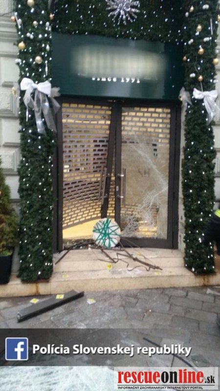 Podľa doterajších informácií doposiaľ neznámy páchateľ krátko po 05.00 h narazil s motorovým vozidlom do klenotníctva na Panskej ulici v Bratislave. Následne z jeho vnútorných priestorov odcudzil viacero kusov stojanov s hodinkami v celkovej hodnote viac ako 500 000 € a z miesta odišiel na neznáme miesto.