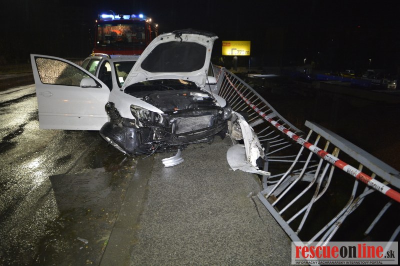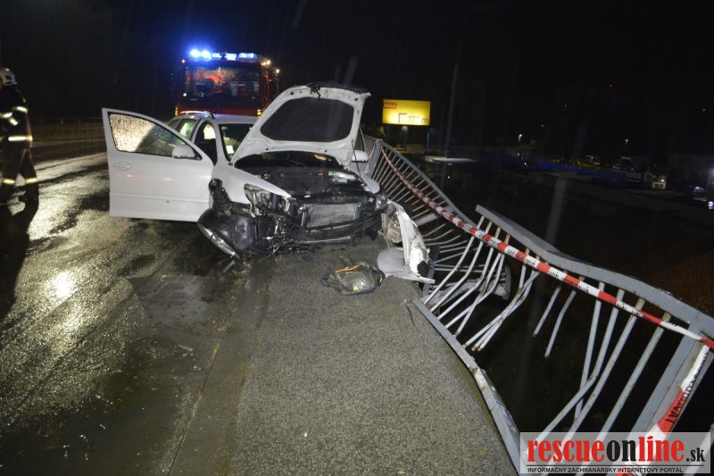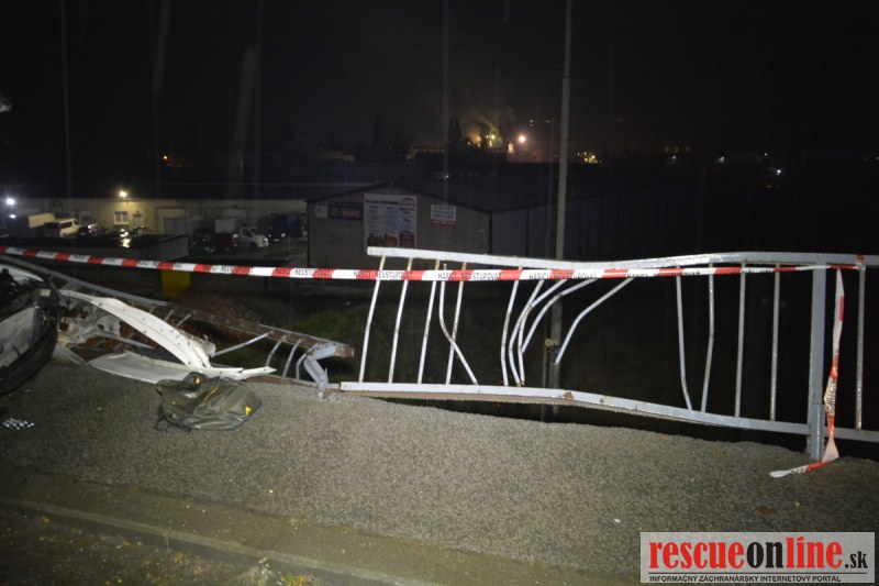 Auto pri nehode prerazilo zábradlie nadjazdu ponad železničnú trať