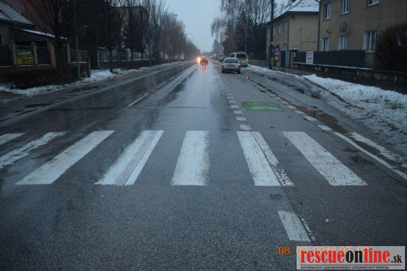 KRPZ Trnava |MM| Polícia žiada občanov o pomoc pri objasnení dopravnej nehody, pri ktorej auto zrazilo chodkyňu. K nehode došlo 8. februára ráno pred pol siedmou v Trnave na priechode pre chodcov na Zelenečskej ulici pri križovatke s Nevädzovou. Osobné auto Ford Mondeo bielej farby narazilo do 43 ročnej ženy, ktorá pri nehode utrpela ľahké zranenia. Dychová skúška na alkohol bola u vodiča negatívna, chodkyni bola odobratá krv.