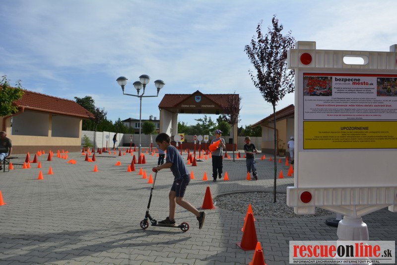 Čierna Voda | Ďalšou obcou, ktorá sa rozhodla do zábavného programu pre deti pri príležitosti MDD zahrnúť aj prevenciu vo forme dopravnej výchovy je obec Čierna Voda. Deti okrem bohatého programu a malých darčekov mali v túto nedeľu možnosť využiť detské zábavné atrakcie a voziť sa na kolobežkách a vlastných dopravných prostriedkoch na dopravnom ihrisku projektu Bezpečné mesto, ktorého komponenty si na tento účel zapožičali. Akcia trvala prakticky celé popoludnie a vystriedalo sa na nej viac ako 100 detí.