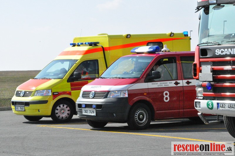 Foto: (C) Miloš Majko, Praha Ruzyně Airport - záchranárske zložky letiska uvedené do plnej pohotovosti.