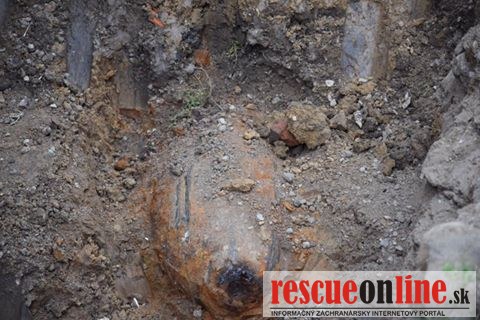 Na mieste boli pyrotechnici. Časť bomby bola ešte zakopaná v zemi.