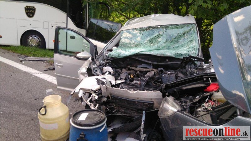 KRPZ Žilina |MM| K tragickej dopravnej nehode došlo v nedeľu 25. júna popoludní na ceste I/59 v mestskej časti Biely Potok, okres Ružomberok. Podľa predbežných informácií vodič vozidla VW Touran, ktorý jazdil v smere od Ružomberka na Banskú Bystricu, z doposiaľ nezistených príčin prešiel do protismeru, kde sa čelne zrazil s oproti jazdiacim autobusom. Po náraze bolo vozidlo VW Touran odhodené späť do pôvodného jazdného pruhu, kde doňho narazil vodič ďalšieho vozidla, jazdiaci smerom na Banskú Bystricu. Pri dopravnej nehode na mieste vyhasol život 57 ročného vodiča VW Touran. S ťažkými zraneniami bol do nemocnice prevezený jeho 23 ročný spolujazdec. Na mieste bol ošetrený vodič autobusu, občan Poľska. Vyšetrovanie dopravnej nehody na mieste prevzal vyšetrovateľ Okresného riaditeľstva PZ v Ružomberku. Okolnosti budú predmetom ďalšieho vyšetrovania.