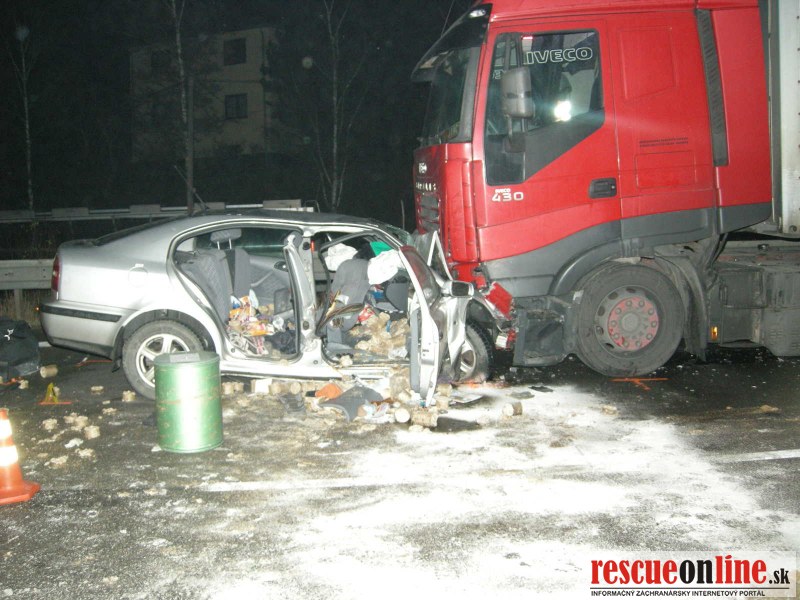KRPZ Žilina |MM| K vážnej dopravnej nehode došlo v pondelok 21. novembra popoludní na ceste I. triedy v katastri obce Povina. 43 ročný vodič na vozidle Škoda Octávia z Bratislavy jazdiaci v smere od Čadce na Žilinu v mierne pravotočivej zákrute v obci Povina predchádzal pred ním jazdiacu kolónu vozidiel. Pri zaraďovaní sa do svojho jazdného pruhu a navyše na namrznutej vozovke tento manéver už nestihol a v protismere sa čelne zrazil s oproti idúcou nákladnou súpravou, ktorú viedol 38 ročný vodič. Pri dopravnej nehode sa ťažko zranili vodič Octávie, jeho 34 ročná spolujazdkyňa a 3 ročný chlapec. Požitie alkoholických nápojov u vodičov polícia nezistila. Hmotná škoda pri dopravnej nehode je odhadnutá na cca 13.000,-€. Okolnosti dopravnej nehody vyšetruje polícia v Čadci.