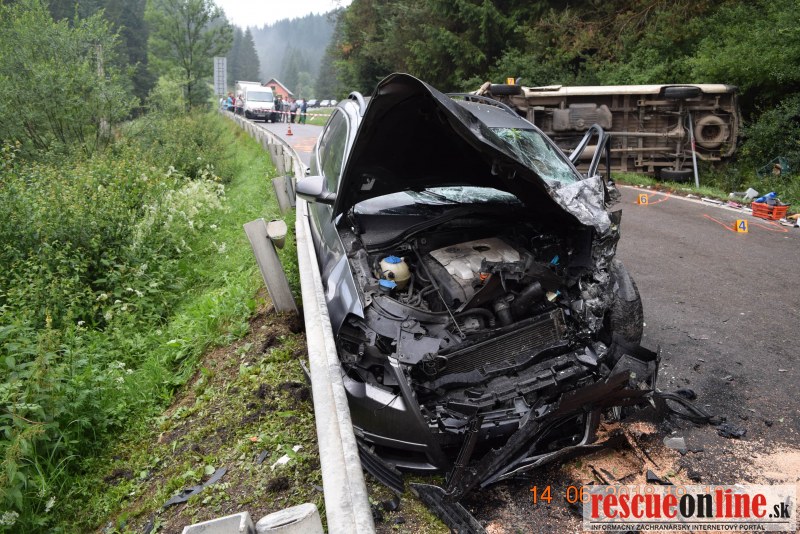 KRPZ Žilina |MM| K tragickej dopravnej nehode došlo vo štvrtok 14. júna 2018 podvečer na ceste II/583 v katastri obce Zázrivá, okres Dolný Kubín. 55 ročný vodič jazdil na vozidle VW LT28 smerom na obec Terchová, pričom po prejdení pravotočivej zákruty dostal s nezistených príčin s vozidlom bočný šmyk a následne došlo k čelnej zrážke s oproti idúcim vozidlom VW Passat, ktoré viedla 29 ročná vodička. Následkom nárazu bolo vozidlo VW Passat natlačené na zvodidlo a dodávka VW LT28 sa prevrátila na bok. Pri dopravnej nehode utrpel vodič dodávky zranenia nezlučiteľné so životom. Vodička VW Passat vyviazla predbežne s ľahkými zraneniami. Hmotná škoda na vozidlách je odhadnutá na cca 9.000,- eur. Okolnosti dopravnej nehody vyšetruje polícia v Dolnom Kubíne.