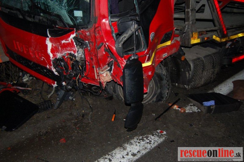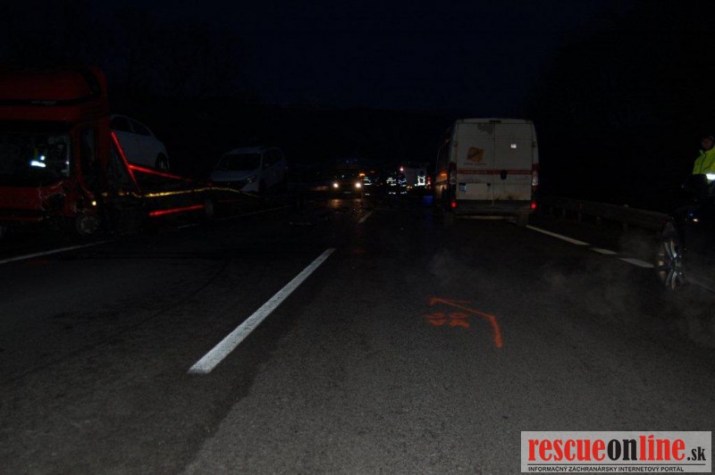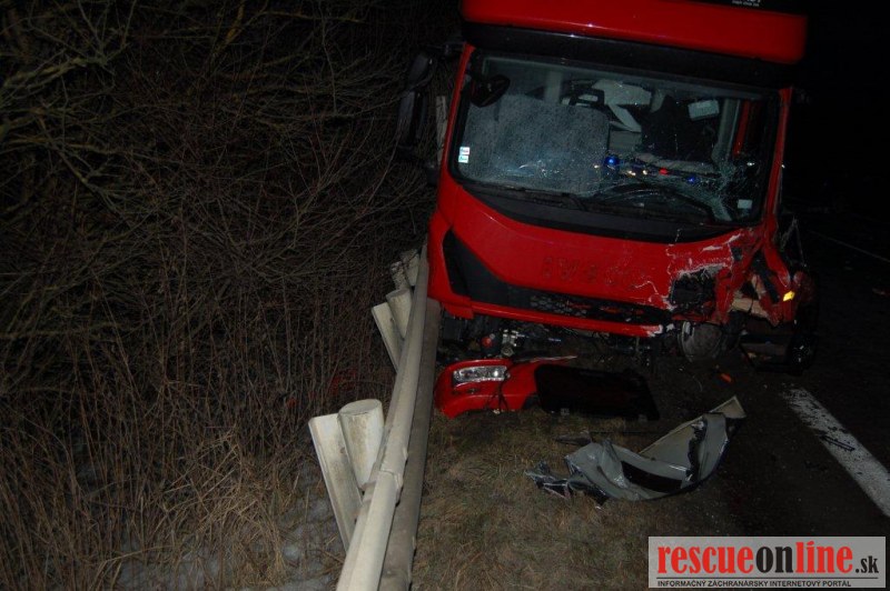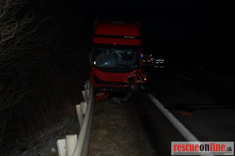 KRPZ Žilina |MM| Vo štvrtok 25. januára okolo 16.00 hodiny došlo k čelnej zrážke osobného auta s nákladným na ceste I/18 medzi Žilinou a Martinom. 69 ročný vodič osobného auta Renault Laguna z doposiaľ nezistených príčin prešiel do protismeru, kde došlo k čelnej zrážke s oprotiidúcim nákladným autom Iveco, ktoré viedol 57 ročný vodič. Po náraze vozidlo Renault odhodilo do zvodidiel v pôvodnom smere jazdy. Pri dopravnej nehode utrpel 69 ročný vodič zranenia nezlučiteľné so životom. Vodič nákladného auta utrpel ťažké zranenia s predpokladanou dobou liečenia nad 42 dní. Prípad na mieste prevzal vyšetrovateľ. Okolnosti dopravnej nehody sú predmetom vyšetrovania.
