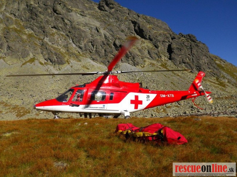AIR - TRANSPORT EUROPE | MM | Popoludní letela popradská posádka Vrtuľníkovej záchrannej zdravotnej služby AIR - TRANSPORT EUROPE k Hincovmu plesu. Pomoc potrebovala 57-ročná česká turistka, ktorá dostala žlčníkový záchvat. Na miesto letel vrtuľník, z ktorého pomocou palubného navijaku dosiahol lekár VZZS pacientku. Následne jej podal liečbu, evakuoval ju opäť navijakom z terénu a s pacientkou na palube leteli leteckí záchranári do popradskej nemocnice.
