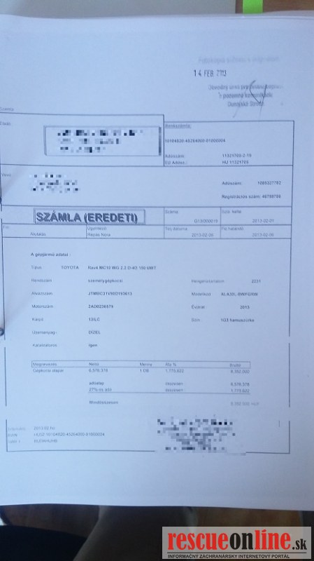 Obvinený je podozrivý z toho, že si zabezpečil falošný doklad o nadobudnutí osobného auta Toyota Rav 4. Išlo o falošnú faktúru od predajcu so sídlom v Maďarsku. Faktúru vydával za pravú a spolu s ďalšími listinami ju prostredníctvom inej osoby predložil na obvodný úrad pre cestnú dopravu a pozemné komunikácie. Tu požiadal o uznanie typového schválenia jednotlivo dovezeného vozidla. Od predajnej spoločnosti bolo následne zistené, že faktúra je falošná a ich spoločnosť takú faktúru nikdy nevydala. Od predajcu značky Toyota bolo preverené, že vozidlo s identifikačným VIN číslom, aké bolo na dokladoch deklarované, nikdy vyrobené nebolo.