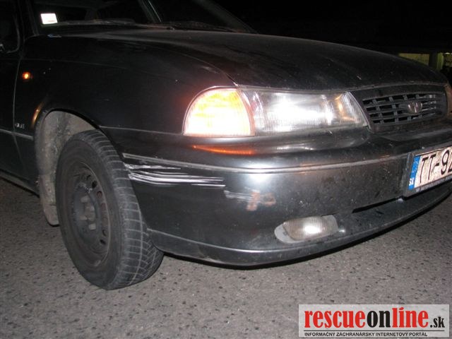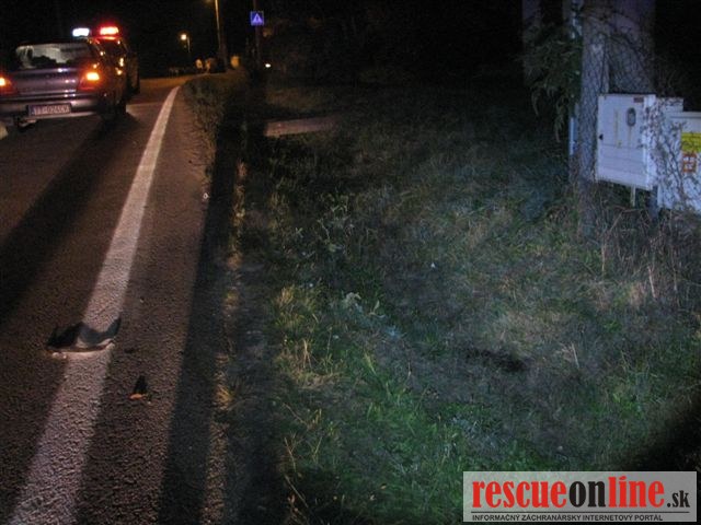 KRPZ Trnava |MM| Polícia vyšetruje tragickú dopravnú nehodu, ktorá sa stala včera (22.9.) okolo 20.hod v obci Ratnovce (okr. Piešťany). 28 ročný vodič osobného auta Daewoo Nexia z Trnavy šiel autom po hlavnej ceste v smere na Piešťany. Oproti miestnemu pohostinstvu pravou časťou auta zachytil chodca kráčajúceho po pravej strane cesty. Náraz odhodil 60 ročného muža z Ratnoviec mimo cestu, kde zostal ležať. Privolaná sanitka ho previezla do nemocnice, pričom zraneniam asi po troch hodinách podľahol. Polícia dychovou skúškou nezistila požitie alkoholu u vodiča, chodcovi bola na zistenie alkoholu odobratá krv. Príčiny a okolnosti dopravnej nehody polícia vyšetruje.