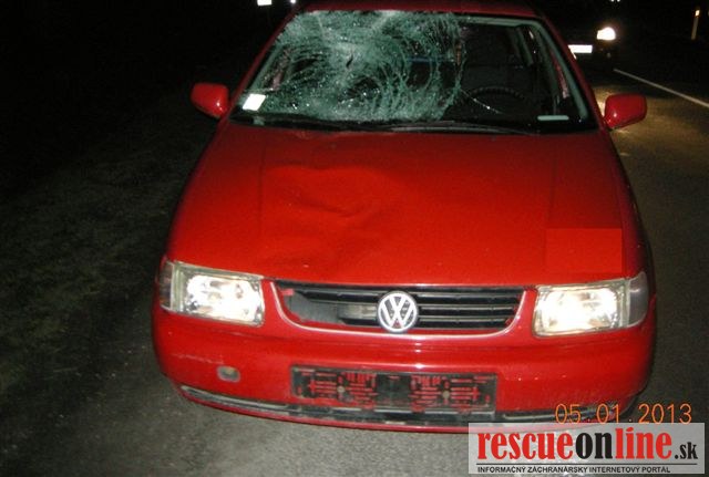 KRPZ Žilina |MM| V sobotu 5. januára došlo pred 17.00 hod. v obci Košťany nad Turcom, okres Martin k dopravnej nehode. 72 ročný vodič (z Martina) viedol osobné motorové vozidlo Volkswagen Polo po ceste I/65 v smere jazdy od Turčianskych Teplíc na smer Martin. Keď sa nachádzal v obci Košťany nad Turcom, z doposiaľ presne nezistených príčin, došlo k stretu vozidla s 81 ročnou chodkyňou (z Martina), ktorá prechádzala cez cestu. Pri dopravnej nehode utrpela chodkyňa ťažké zranenia, ktorým po prevoze do nemocnice v nočných hodinách žiaľ podľahla. Alkohol u vodiča dychovou skúškou zistený nebol. Na vozidle vznikla predbežná škoda vo výške 1.000.-€.