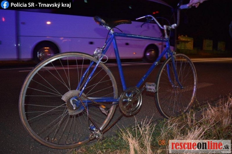 KRPZ Trnava |MM| Polícia v Piešťanoch bola minulý týždeň privolaná k dopravnej nehode medzi cyklistom a motocyklistom. Vo večerných hodinách vošiel 55 ročný cyklista z chodníka na Ulici Bratislavskej v Piešťanoch na priechod pre chodcov. Na priechode spadol z bicykla, kde došlo vzápätí k zrážke s vodičom motocykla zn. KKEAWY. Cyklista utrpel pri nehode zlomeninu nohy a podľa predbežnej lekárskej správy mal ťažké zranenia. Mladý, 18 ročný vodič motocykla, sa pri nehode nezranil a polícia alkohol u neho nezistila. Polícia dostala včera informáciu, že cyklista zraneniam v nemocnici podľahol. Podľa prvotných informácií mal práve cyklista zaviť nehodu. Či v tomto prípade zohral úlohu aj alkohol, polícia zisťuje cez toxikologické skúmanie.