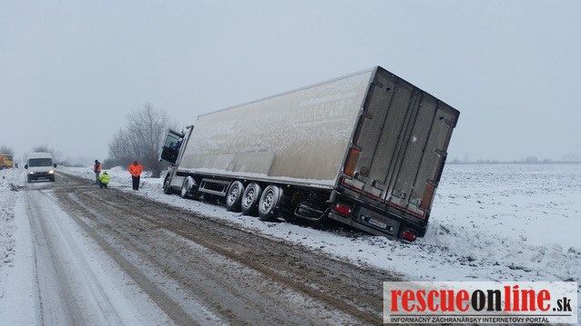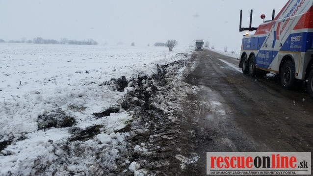 SOSTEAM SLOVAKIA |MM| Silné sneženie, klzké a neupravené cesty dnes spôsobili vodičom problémy na viacerých miestach Slovenska. Práve neupravená cesta mohla byť príčinou nehody, ktorá sa dnes stala medzi obcami Dolný Štál a Topoľníky. Kamión na tomto úseku zišiel z cesty. Odťah vykonala spoločnosť SOSTEAM SLOVAKIA, s.r.o. s pomocou Česmad Slovakia.