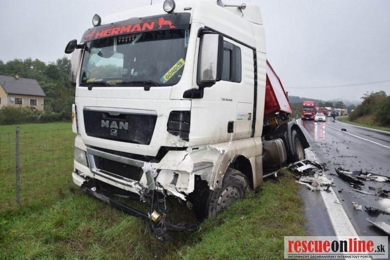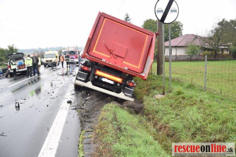 KRPZ Banská Bystrica |MM| K ďalšej vážnej dopravnej nehode došlo dnes (12.10.) na ceste I/50 za obcou Pinciná. Nehoda sa stala v čase o 8,25 hodine. 27-ročný vodič osobného motorového vozidla Seat Alhambra z Českej republiky viedol vozidlo smerom na Rimavskú Sobotu, predbiehal pred sebou idúce nákladné motorové vozidlo, pričom prešiel do protismeru, kde sa čelne zrazil s protiidúcim nákladným motorovým vozidlo MAN s návesom. Kamión viedol 46-ročný vodič, občan Maďarska. Pri dopravnej nehode sa vodič Seatu ťažko zranil a ťažké zranenia utrpel aj jeho 36-ročný spolujazdec, občan Českej republiky. U vodičov alkohol zistený nebol. Škoda na vozidlách je odhadnutá na 5 000 eur. Dopravná nehoda je v štádiu vyšetrovania. Vo veci bude začaté trestné stíhanie pre prečin ublíženie na zdraví.