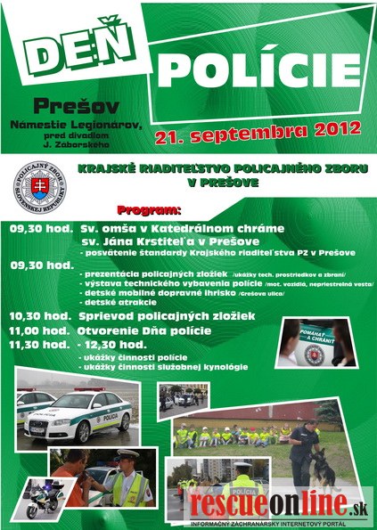 KRPZ Prešov |MM| Pozývame Vás na DEŇ POLÍCIE, ktorý sa uskutoční v piatok 21.9.2012 na Námestí Legionárov v Prešove pred Divadlom Jonáša Záborského.