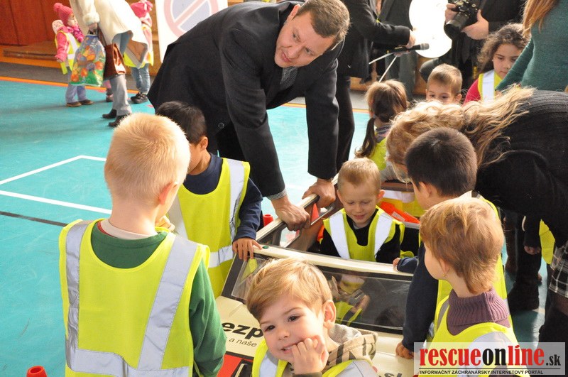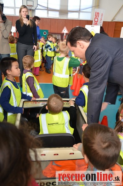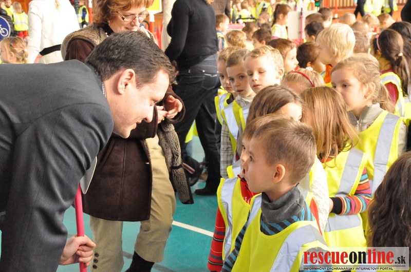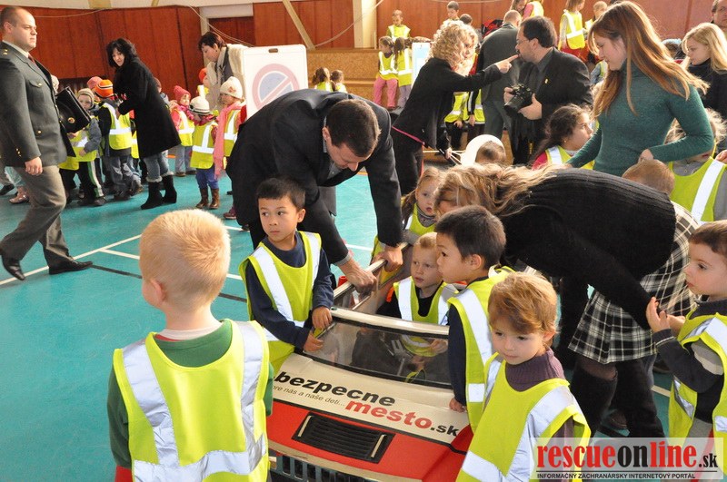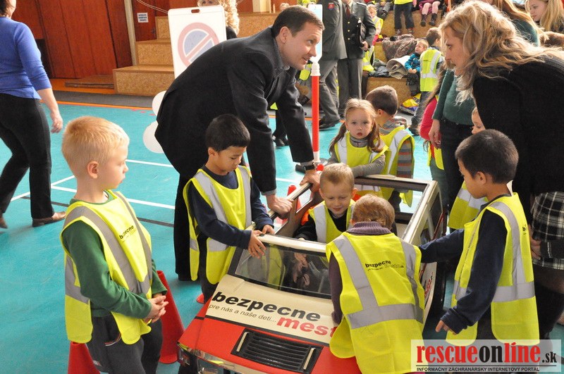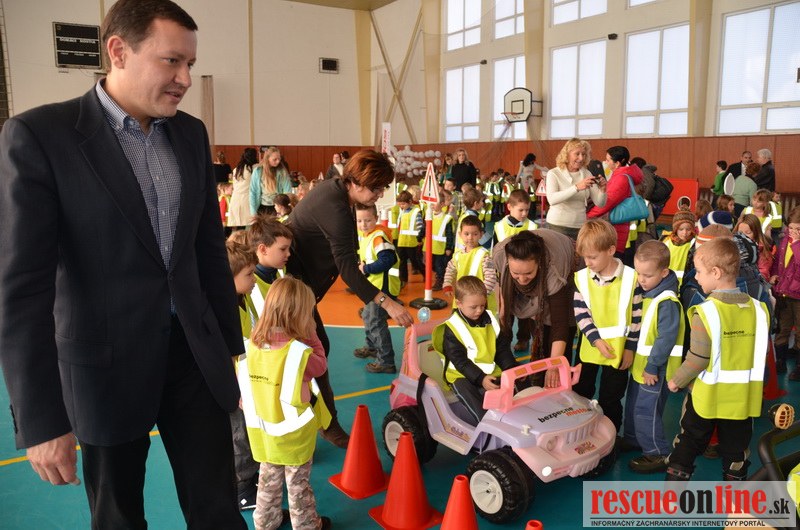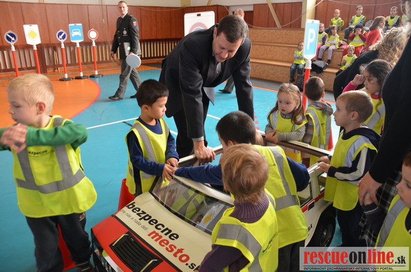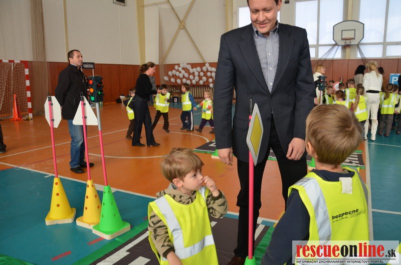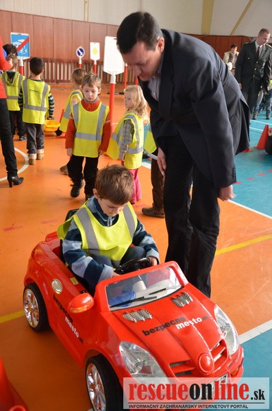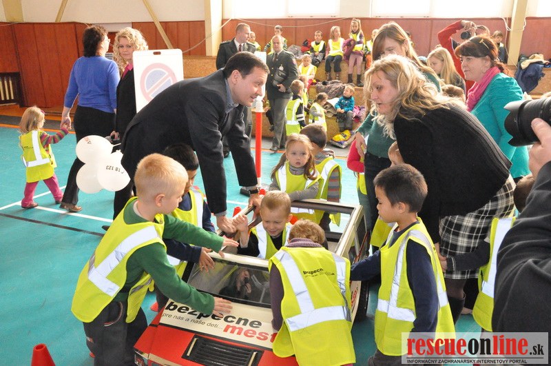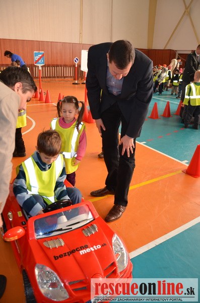 Ministerstvo vnútra SR prevencii kriminality venuje maximálnu pozornosť a aj to bolo dôvodom, prečo sa s výsledkami projektu priamo do mesta prišiel oboznámiť aj Minister vnútra SR Daniel Lipšic osobne. So záujmom prešiel celou športovou halou, v ktorej boli rozložené všetky časti prenosných dopravných ihrísk a priamo medzi našimi škôlkármi si vypočul funkcie a určenie jednotlivých komponentov. Niektorým detičkám spolu s prednostom OÚ Jozefom Kloknerom dokonca pomohol v rozbehnutí batériového autíčka či nasadení ochrannej prilby.