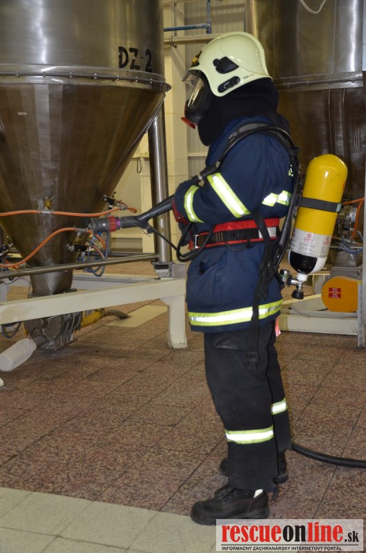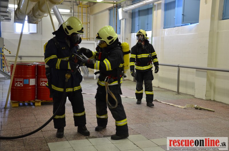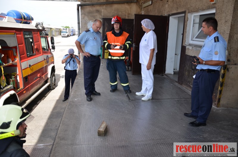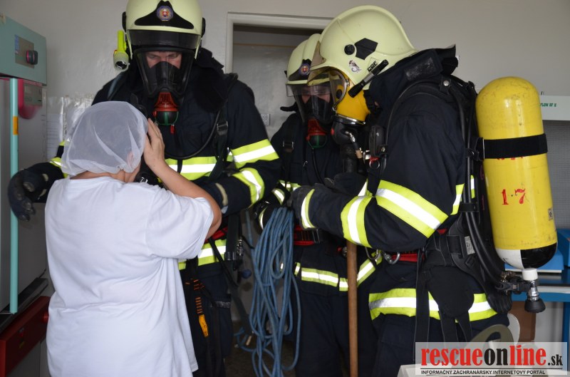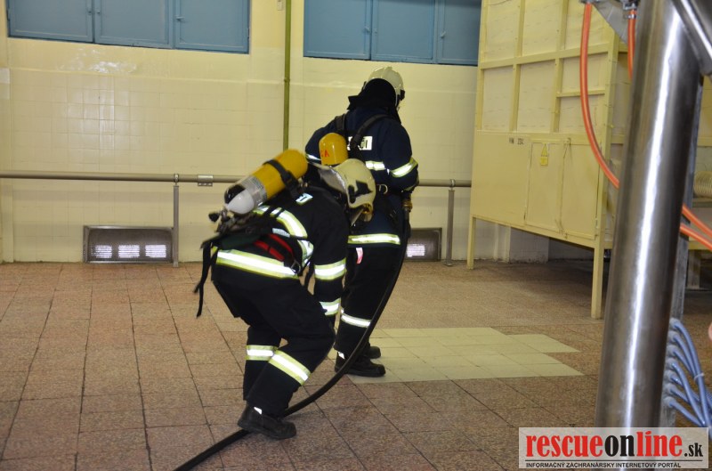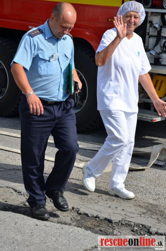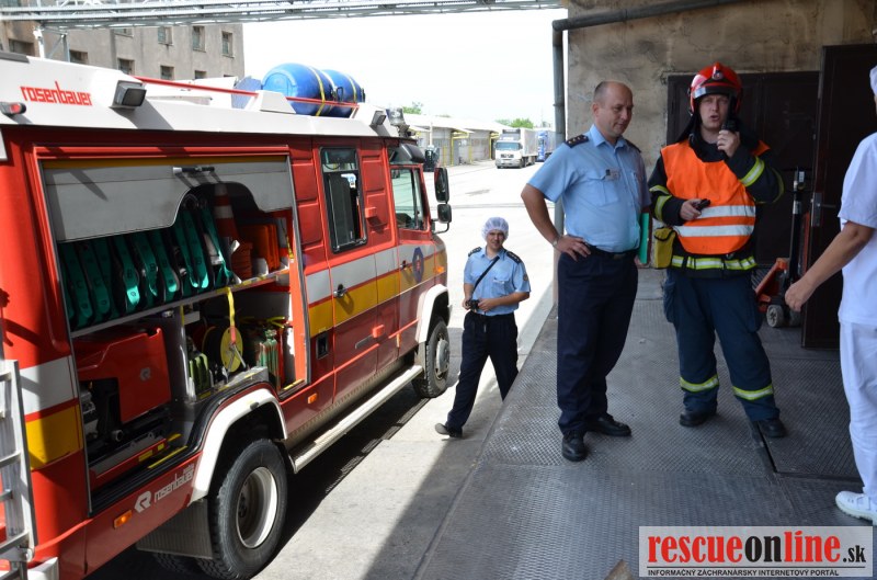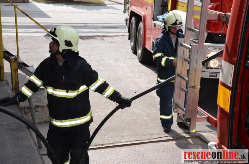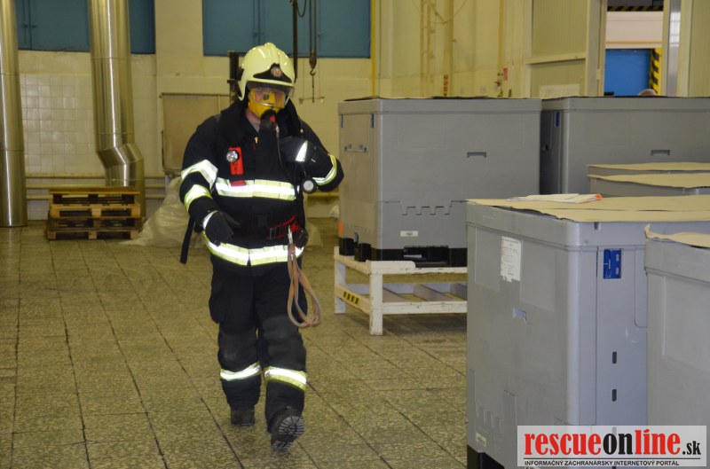 Hasiči v spolupráci s vedením spoločnosti a zamestnancami cvičili mimo iné aj evakuáciu osoby zo zadymeného priestoru a použitie výškovej techniky v závode.