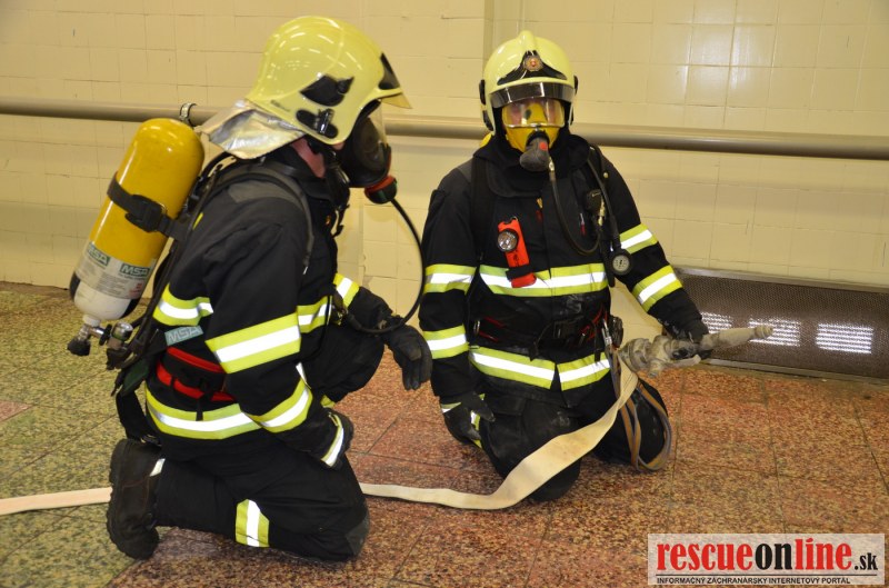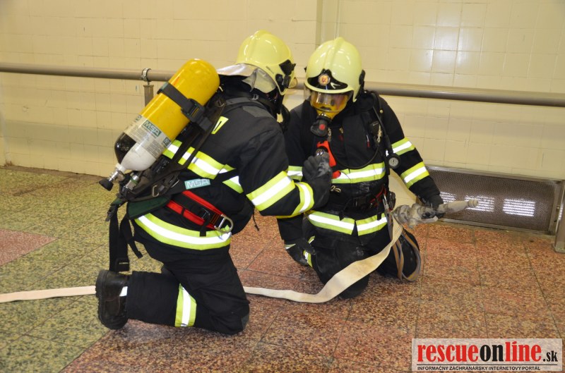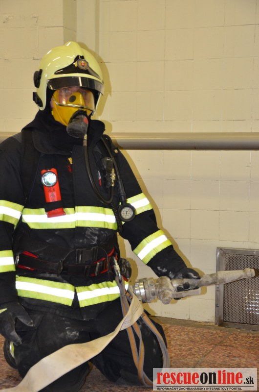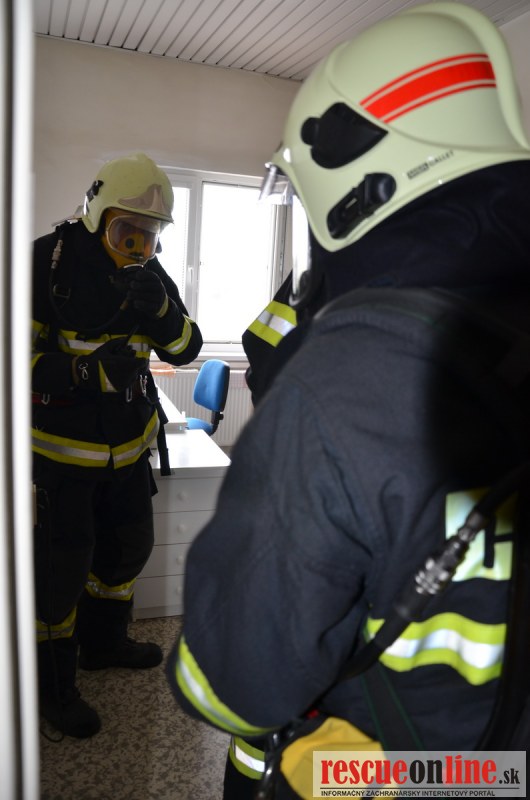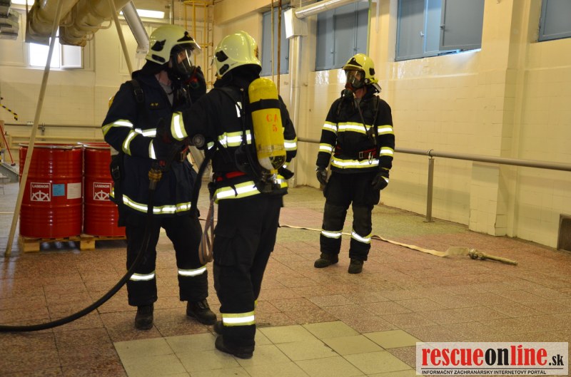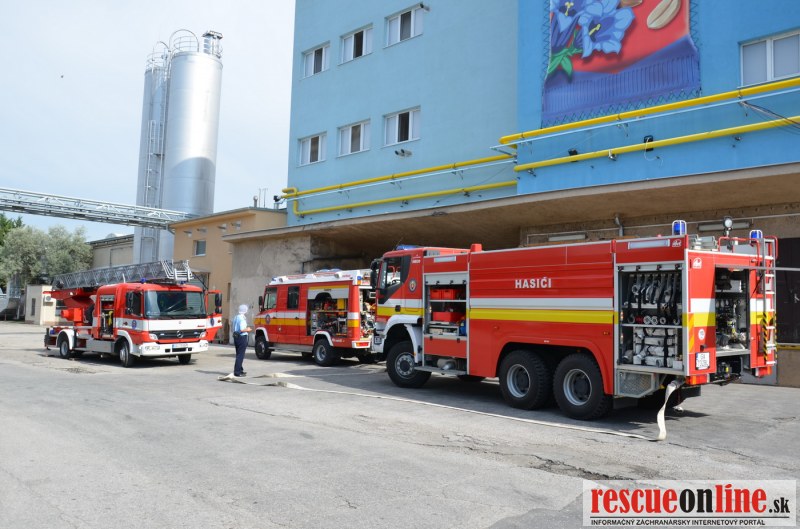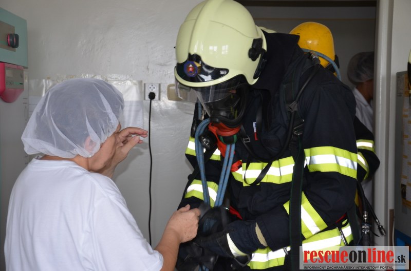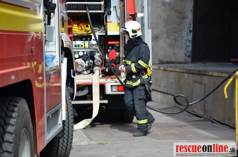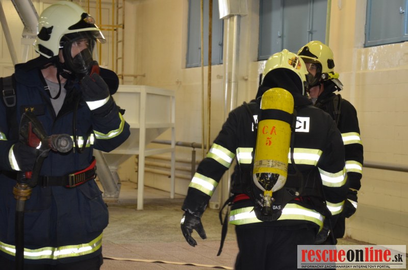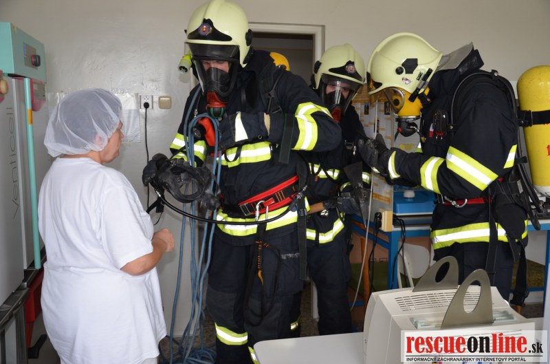 Hasiči v spolupráci s vedením spoločnosti a zamestnancami cvičili mimo iné aj evakuáciu osoby zo zadymeného priestoru a použitie výškovej techniky v závode.