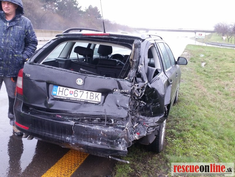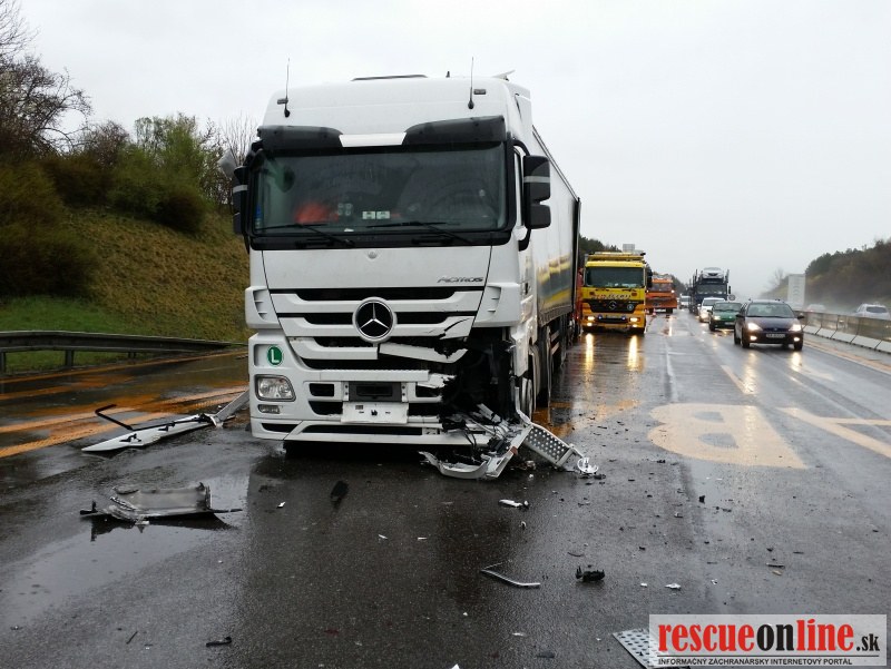 SOSTEAM SLOVAKIA |MM| Dnešná dopravná nehoda na D1 pri Senci v smere z Trnavy si nevyžiadala žiadne zranenia. Vodička osobného vozidla sa na poslednú chvíľu rozhodla odbočovať z diaľnice a cez všetky tri pruhy sa snažila preradiť, no kamión nedokázal ubrzdiť.