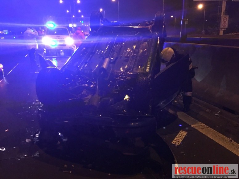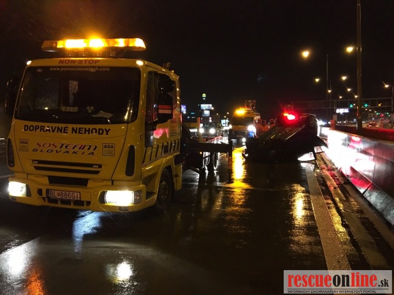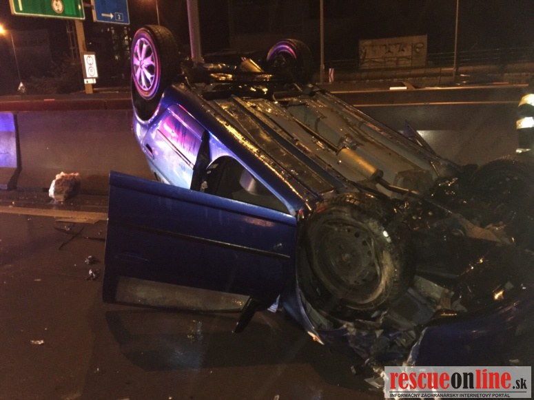 SOSTEAM SLOVAKIA |MM| Bratislava - dopravná nehoda za tunelom Sitina. Neznámy vodič narazil do zadnej časti vozidla Toyota Yaris a ušiel z miesta nehody. Toyota sa následkom nárazu prevrátila. Vodič utrpel menšie zranenia.