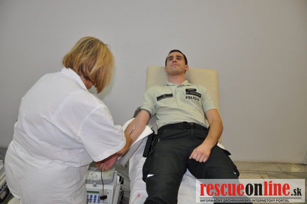 KRPZ Žilina |MM| V stredu 27. septembra 2017 od 08.00 hodiny prebiehala na Krajskom riaditeľstve Policajného zboru v Žiline dobrovoľná akcia pod názvom „Policajná kvapka krvi“. Záštitu nad ušľachtilou akciou prevzal zástupca riaditeľa krajského riaditeľstva plk. JUDr. Jozef Tomana, ktorý ju aj inicioval (V uplynulých troch rokoch zorganizovalo Krajské riaditeľstvo Policajného zboru v Žiline už päť akcií „Policajná kvapka krvi“ v máji a v novembri 2015, v apríli a v novembri 2016 a v apríli 2017. Celkovo sa na nich zúčastnilo 297 dobrovoľných darcov krvi, ktorí darovali viac ako 126.000 - stodvadsaťšesťtisíc mililitrov krvi). Cieľom akcie bolo neustále podporovať darovanie krvi, tohto nenahraditeľného orgánu, a tak naďalej rozširovať rady dobrovoľných darcov krvi aj na krajskom riaditeľstve. O dobrovoľné darovanie krvi prejavilo záujem celkovo 51 dobrovoľných darcov krvi. Okrem policajtov darovali krv občianski zamestnanci aj z Centra podpory Žilina. Celkovo bolo darovaných takmer 22.000 (dvadsaťdvatisíc) mililitrov krvi. Medzi dobrovoľnými darcami boli viacerí, ktorí sú viacnásobnými darcami krvi a držiteľmi Jánskeho plakety. Krv darovali aj prvodarcovia. Policajti aj takouto formou chceli naplniť poslanie polície „Pomáhať a chrániť“.