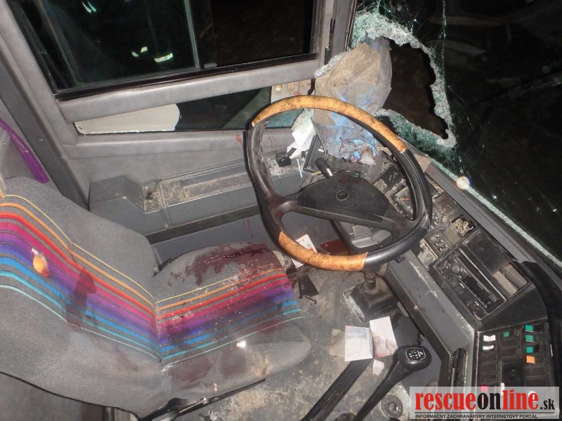 KR HaZZ Trnava |MM| Včera (27. decembra 2016) krátko po 20.00 hod. bola nahlásená dopravná nehoda autobusu so zraneným vodičom medzi obcami Okoč a Topoľníky. Po príjazde hasičov na miesto udalosti sa autobus nachádzal mimo cesty, predné okno bolo prerazené oceľovou tyčou, ktorá bola zapichnutá v hornej polovici tela vodiča. V autobuse sa nachádzali 4 cestujúci bez zranenia. Hasiči zraneného vodiča vyslobodili hydraulickým zariadením a odovzdali ho do starostlivosti záchrannej zdravotnej služby. Na vozidle hasiči vykonali protipožiarne opatrenia. Na mieste udalosti zasahovali hasiči z Dunajskej Stredy a Veľkého Medera.