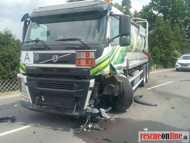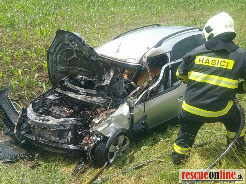 Dopravná nehoda cisterny a osobného motorového vozidla s následným požiarom