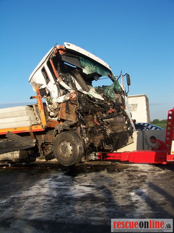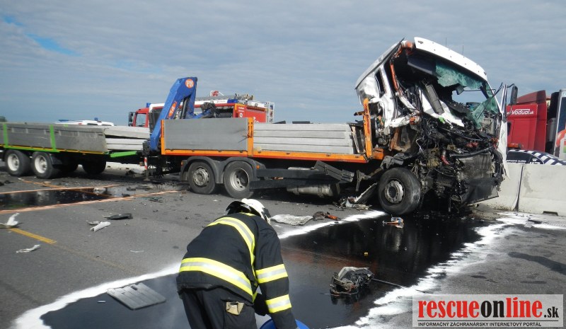 Dopravná nehoda dvoch nákladných vozidiel na diaľnici D1