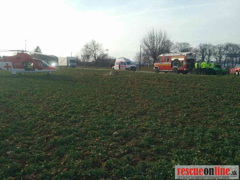 KR HaZZ Trnava |MM| Včera (21. marca 2017) krátko po 15:30 hod. bola ohlásená dopravná nehoda dvoch osobných motorových vozidiel na št. ceste č. II/504 v katastri mesta Trnava. V dôsledku dopravnej nehody došlo k zraneniu troch osôb. Zasahujúci hasiči z Trnavy vyslobodili zranené osoby z havarovaných vozidiel pomocou hydraulického vyslobodzovacieho zariadenia, poskytli zraneným osobám predlekársku prvú pomoc a pomohli ich naložiť do vozidiel záchrannej zdravotnej služby. Jedna zranená osoba, bola odvezená vrtuľníkom leteckej záchrannej služby. Havarované automobily zabezpečili proti vzniku požiaru.