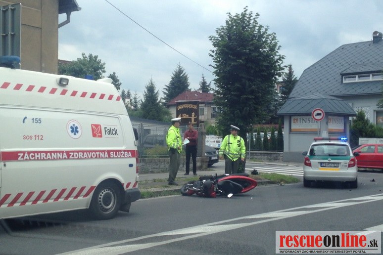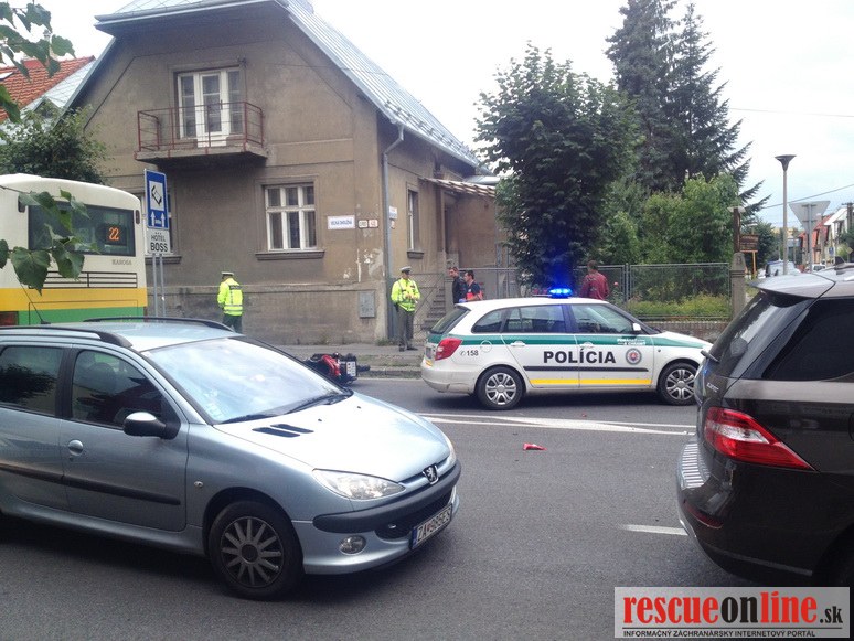 Matej Kurinec |MM| Dňa 2.9.2013, pondelok sa krátko popoludní (12:15) stala v Žiline dopravná nehoda motocyklistu a vodiča vozidla Škoda Octavia na križovatke ulíc Veľká okružná a Juraja Slottu. Pri odbočovaní vľavo (z ulice Veľ. ok. na ulicu J. Slottu) nedal vodič Octavie prednosť motocyklistovi jazdiacemu po hlavnej v smere od križovatky Veľká okružna + Hálkova smerom k OC Aupark, následkom čoho motocyklista narazil so svojím motocyklom do pravého zadného boku Octavie. Po zrážke motocyklista spadol z motorky na miestnu komunikáciu a utrpel zranenia pravej dolnej končatiny. Následne záchranná služba previezla vodiča motocyklu do FNsP Žilina na ďaľšie vyšetrenia, vodič Octavie sa nezranil. Počas dokumentovania nehody bola križovatka ťažko prejazdná a doprava bola riadená políciou.