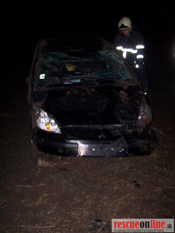 KR HaZZ Trnava |MM| Na OR HaZZ Trnava bola v utorok 27. decembra 2011 o 18:38 hod. nahlásená dopravná nehoda osobného motorového vozidla v smere Trnava - Špačince. Na miesto udalosti bola vyslaná jednotka HaZZ, štyria príslušníci s hasičskou technikou MB Vario. Po príjazde na miesto udalosti bolo zistené, že osobné motorové vozidlo Mitsubishi Cold bolo prevrátené na streche v poli. Vodič sa nachádzal mimo vozidla. Na miesto udalosti sa dostavila ZZS a Polícia. Príslušníci HaZZ počkali na odťahovú službu, ktorá auto prevrátila. Zabezpečili auto proti požiaru odpojením batérie a proti úniku prevádzkových kvapalín. Po naložení vozidla na odťahovú službu, očistili vozovku od blata. Jednotka sa na základňu vrátila o 19:54 hod.