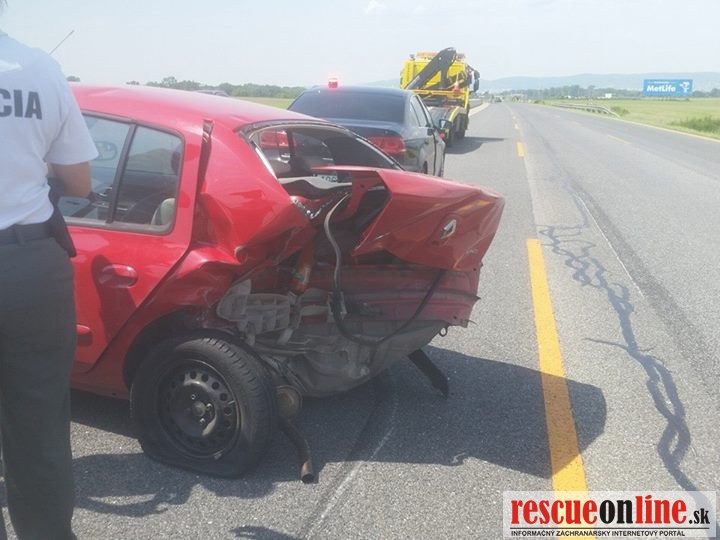 SOSTEAM SLOVAKIA |MM| Dopravná nehoda sa dnes stala na D1 na 18km zo Senca do Bratislavy. Mladý vodič vozidla VW Golf nedodržal maximálnu povolenú rýchlosť a nabúral do zadnej časti vozidla Renault Thalia. 2 osoby boli prevezené sanitkou do nemocnice.